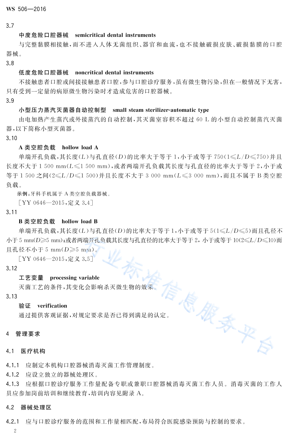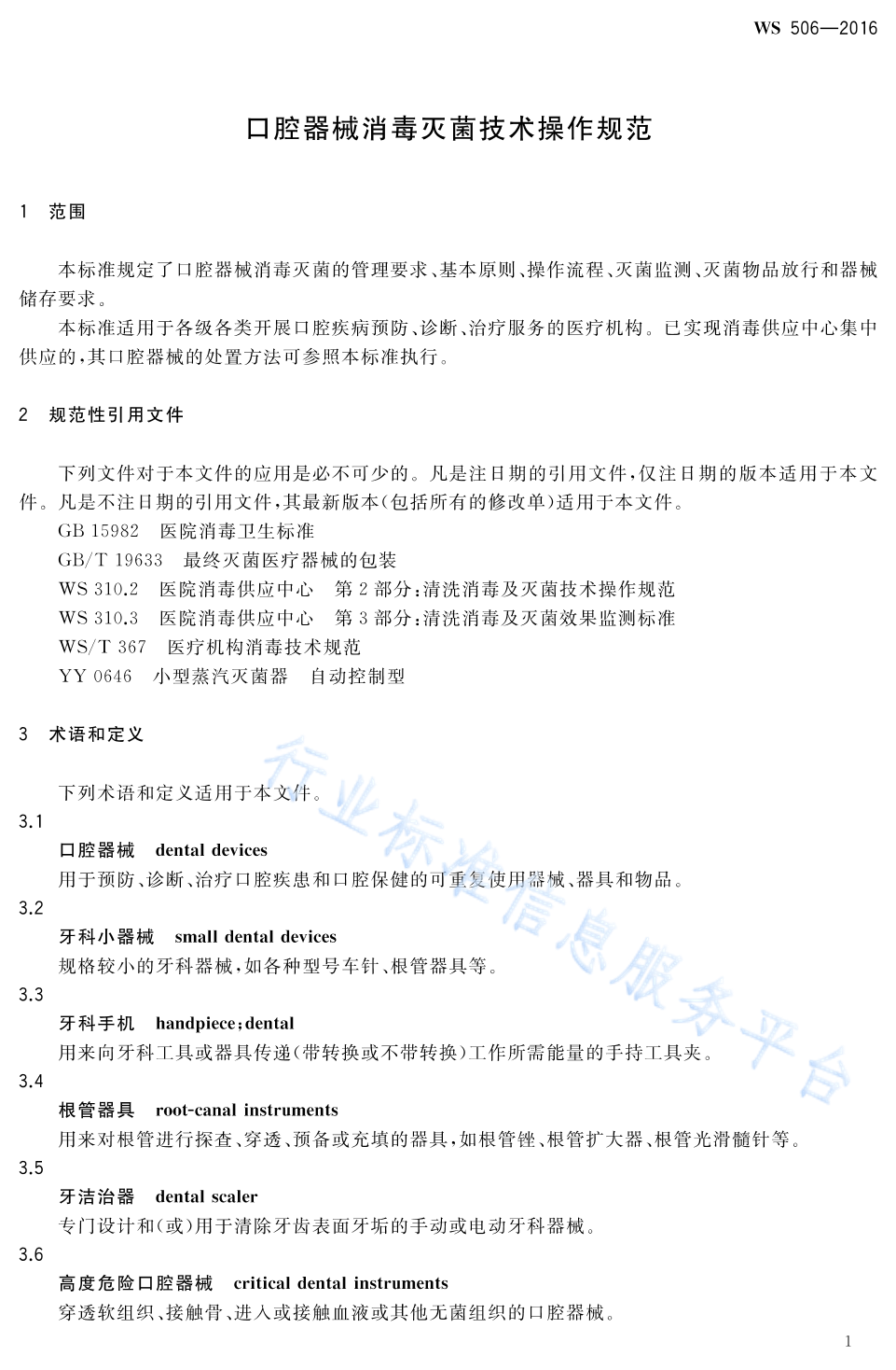 WS 506-2016 口腔器械消毒灭菌技术操作规范