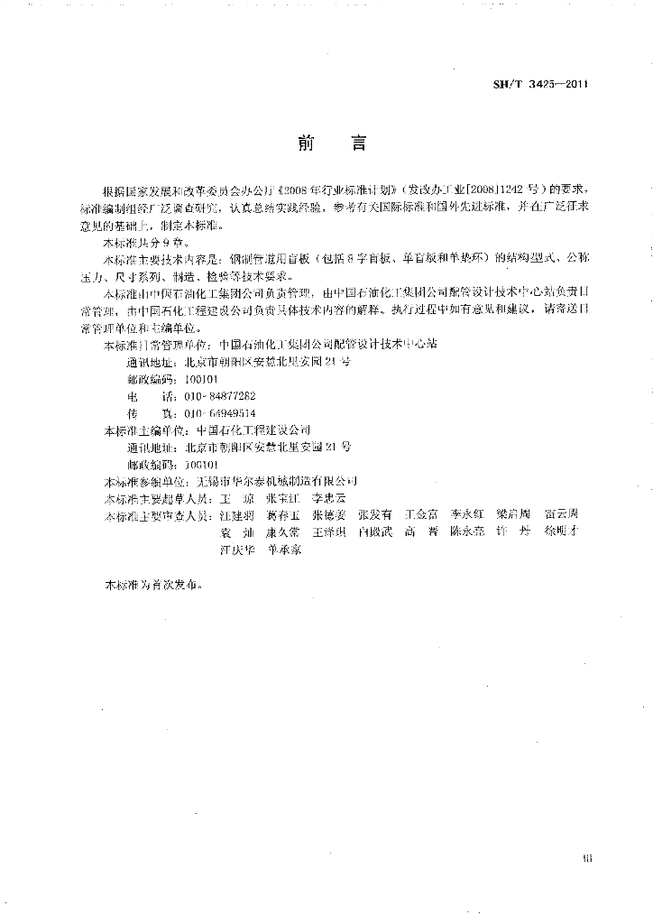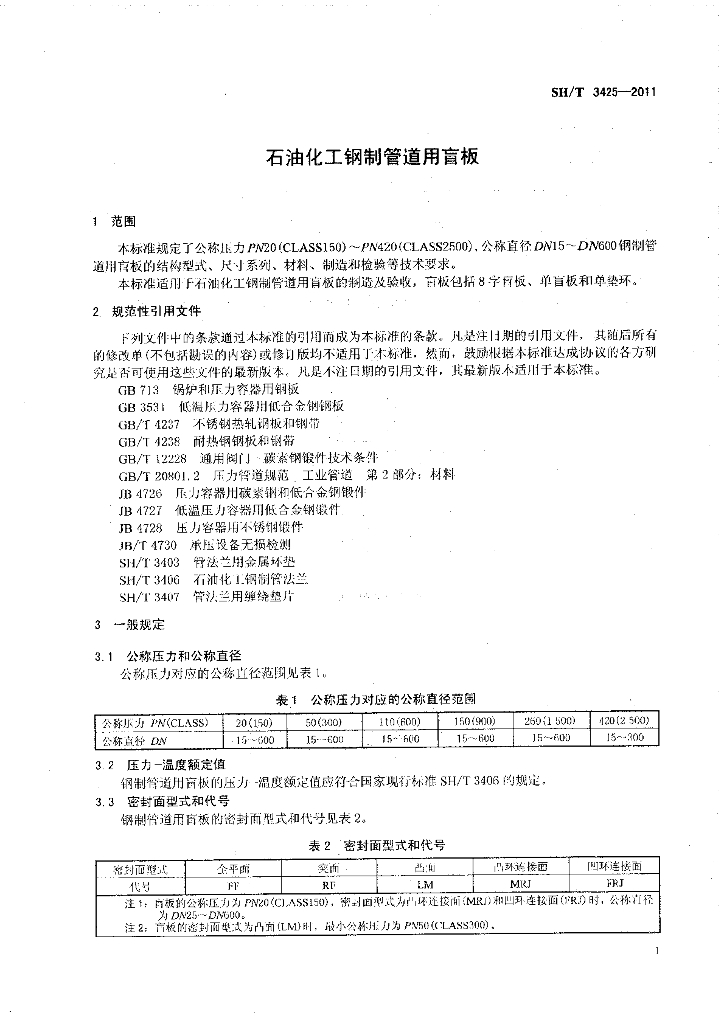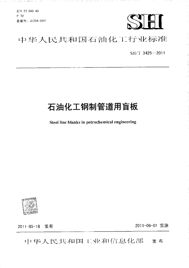 SH/T 3425-2011 石油化工钢制管道用盲板