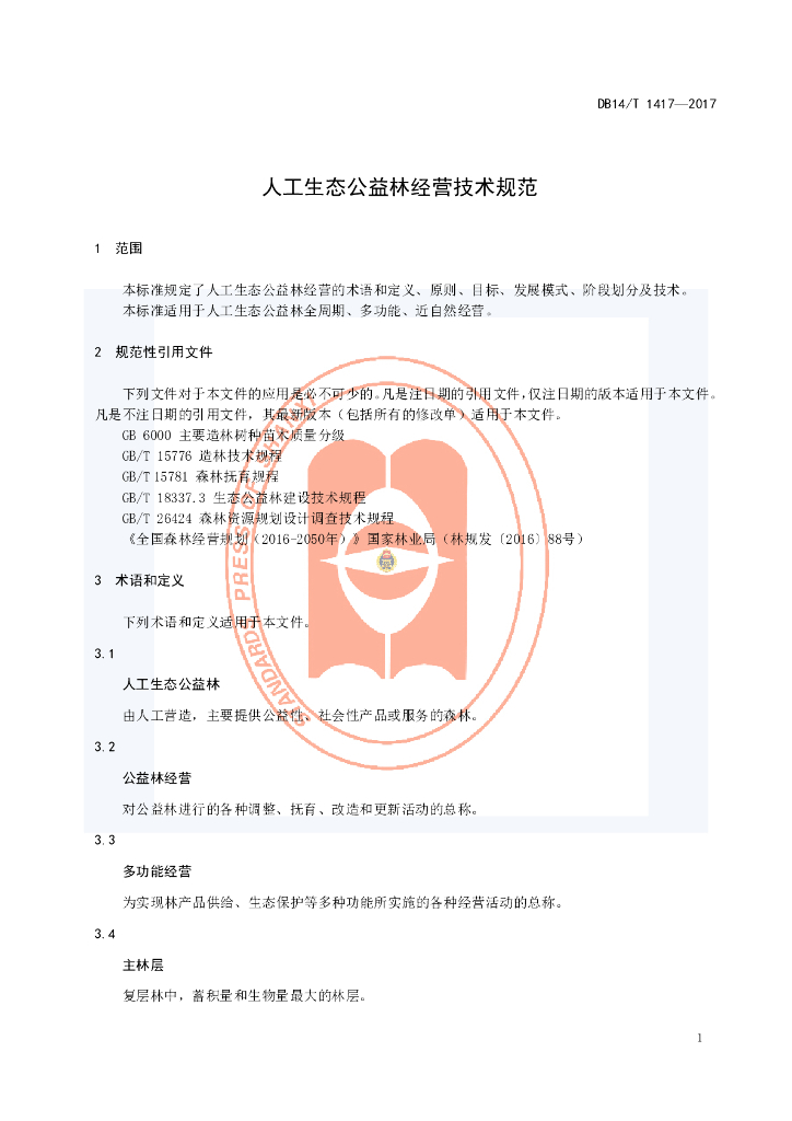DB14/T 1417-2017 人工生态公益林经营技术规范
