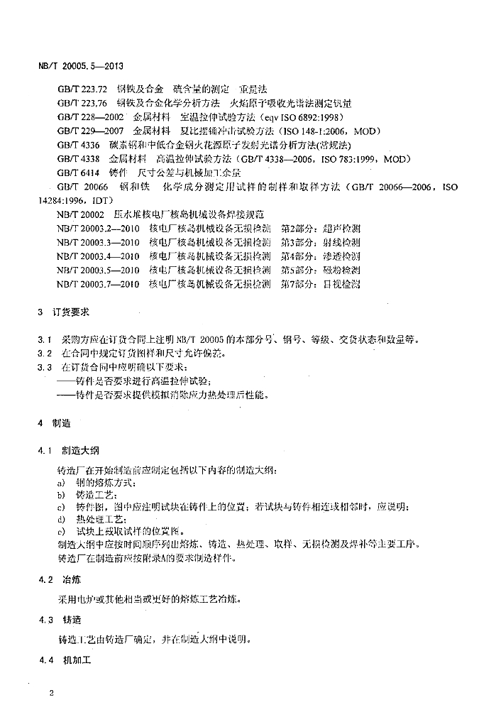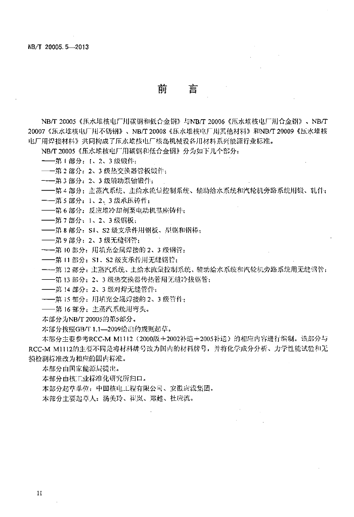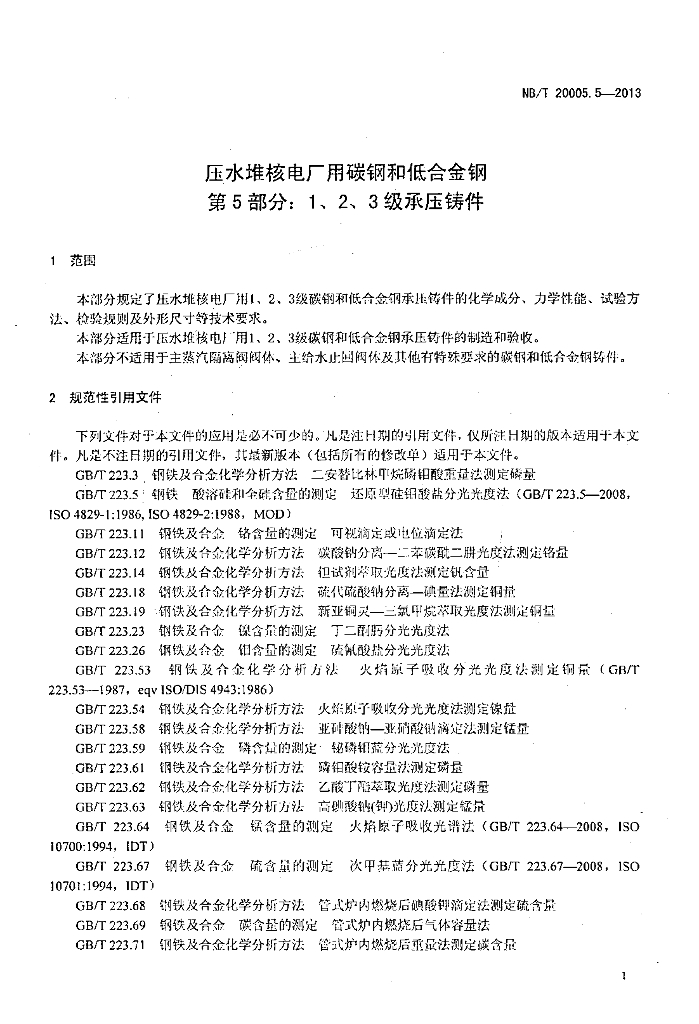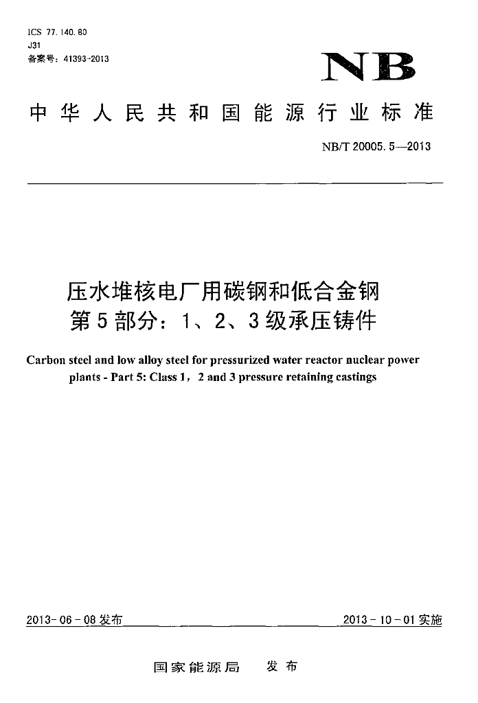 NB/T 20005.5-2013 压水堆核电厂用碳钢和低合金钢 第5部分:1、2、3级承压铸件