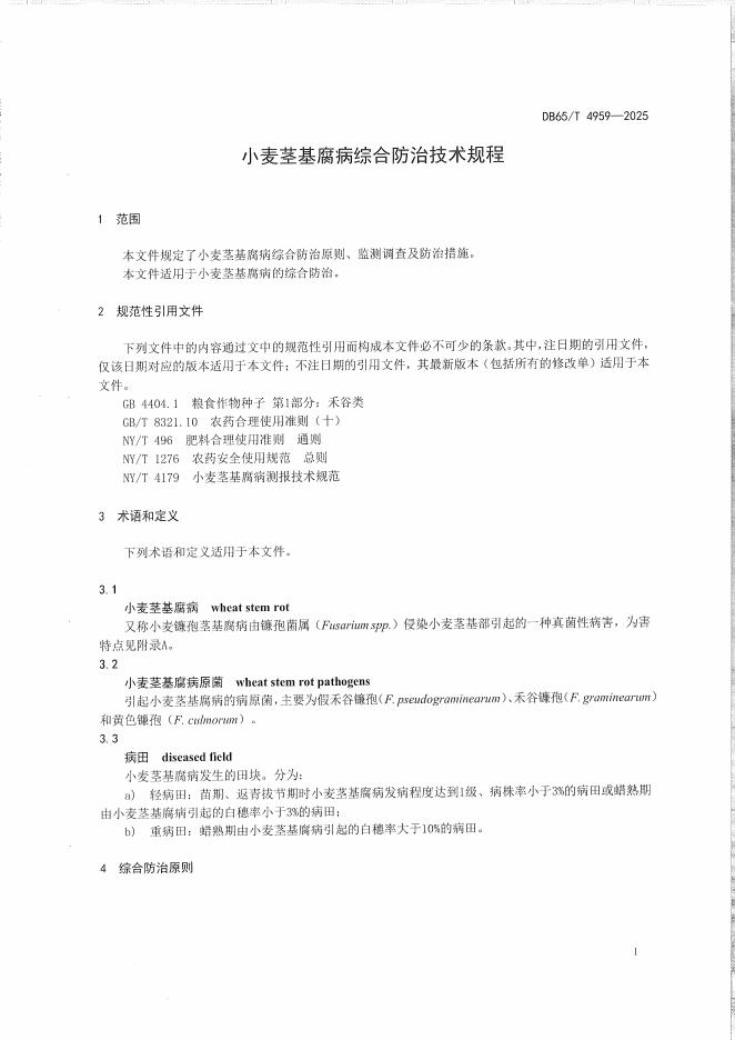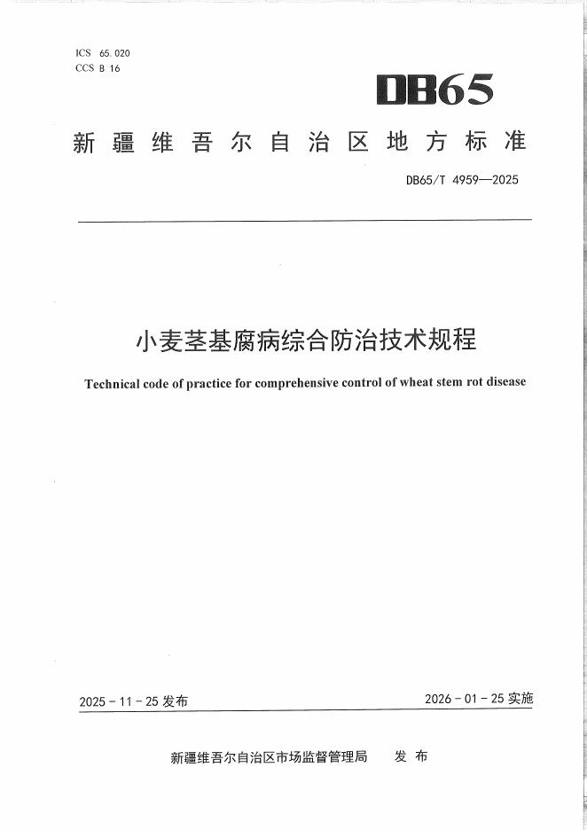 DB65/T 4959-2025 小麦茎基腐病综合防治技术规程