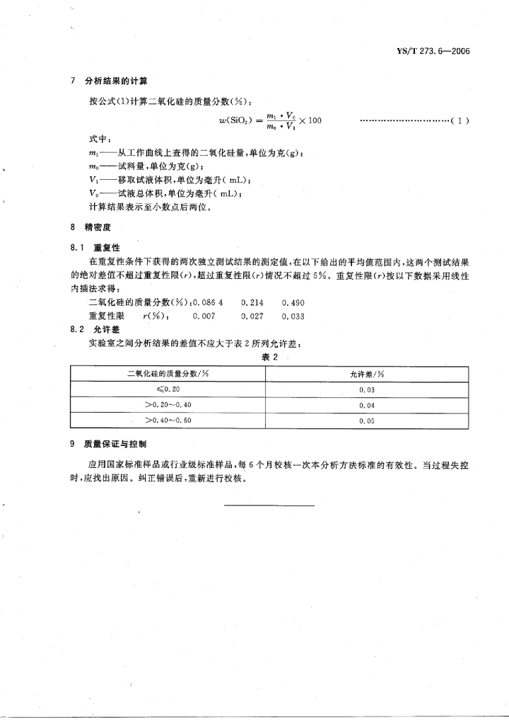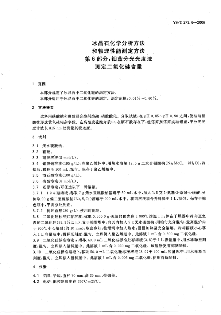 YS/T 273.6-2006 冰晶石化学分析方法和物理性能测定方法 第6部分:钼蓝分光光度法测定二氧化硅含量
