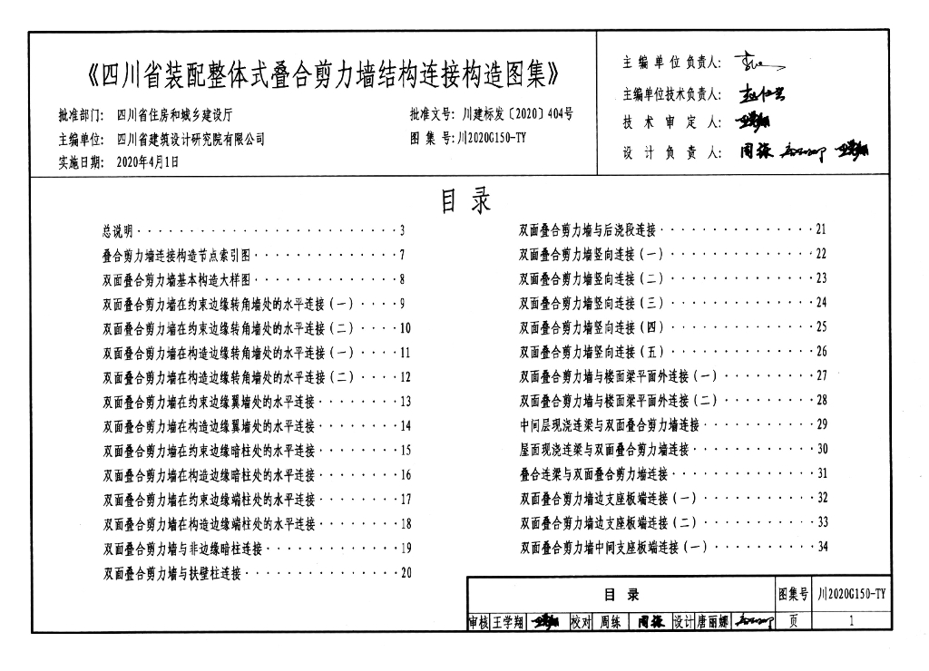 川2020G150-TY 四川省装配整体式叠合剪力墙结构连接构造图集