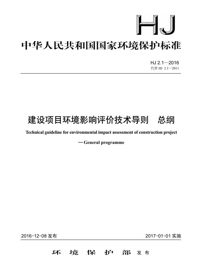 HJ 2.1-2016 建设项目环境影响评价技术导则 总纲