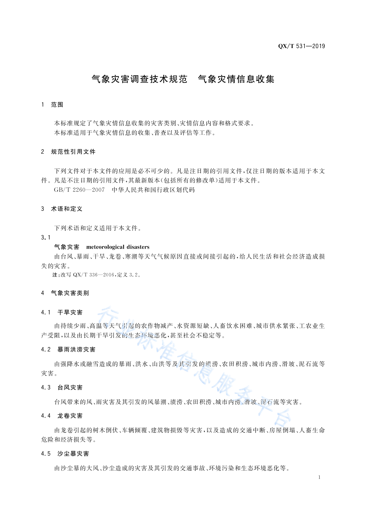 QX/T 531-2019 气象灾害调查技术规范 气象灾情信息收集
