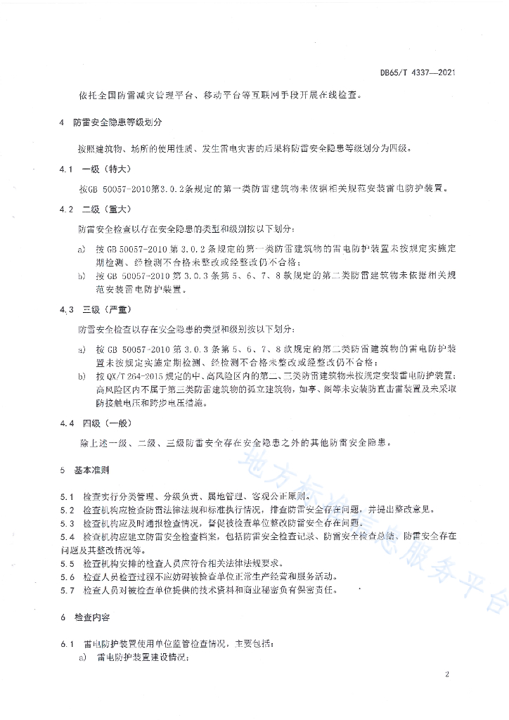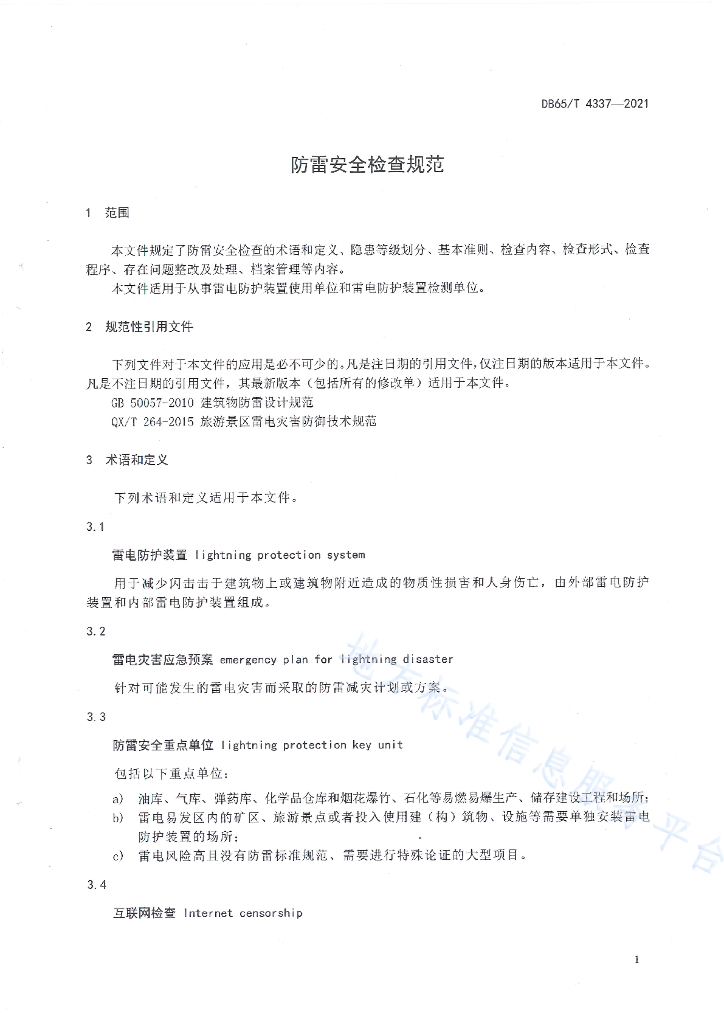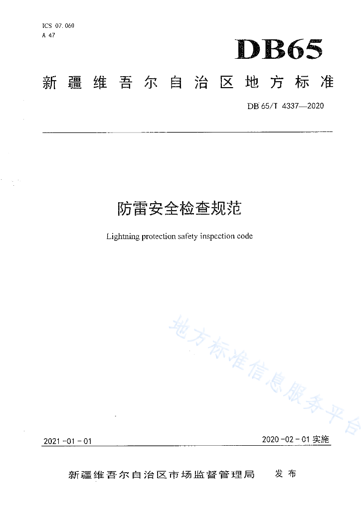 DB65/T 4337-2020 防雷安全检查规范