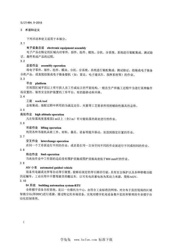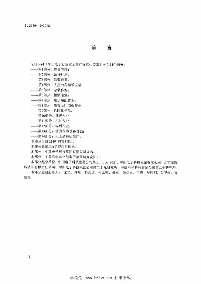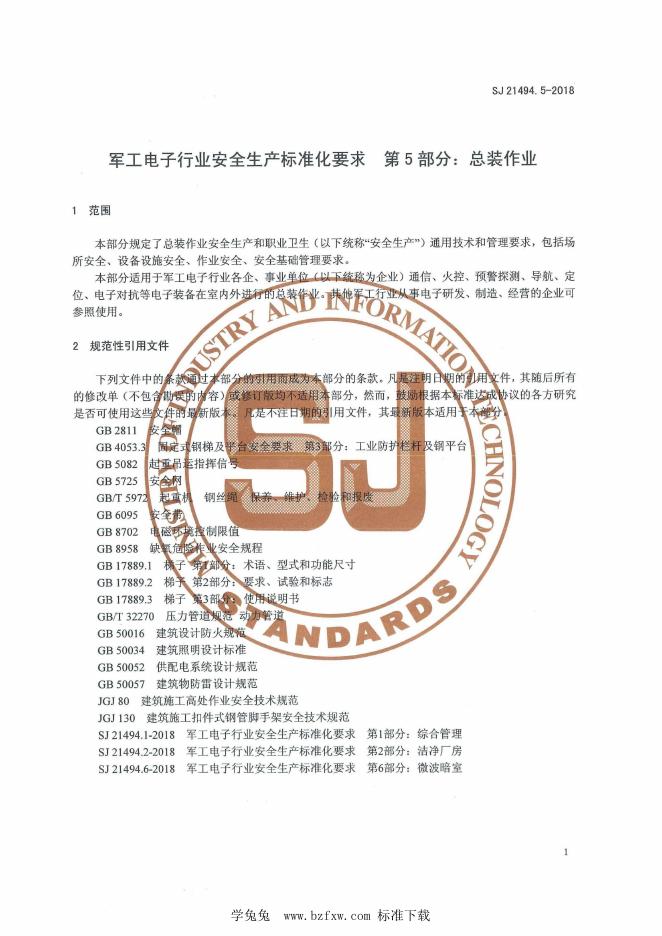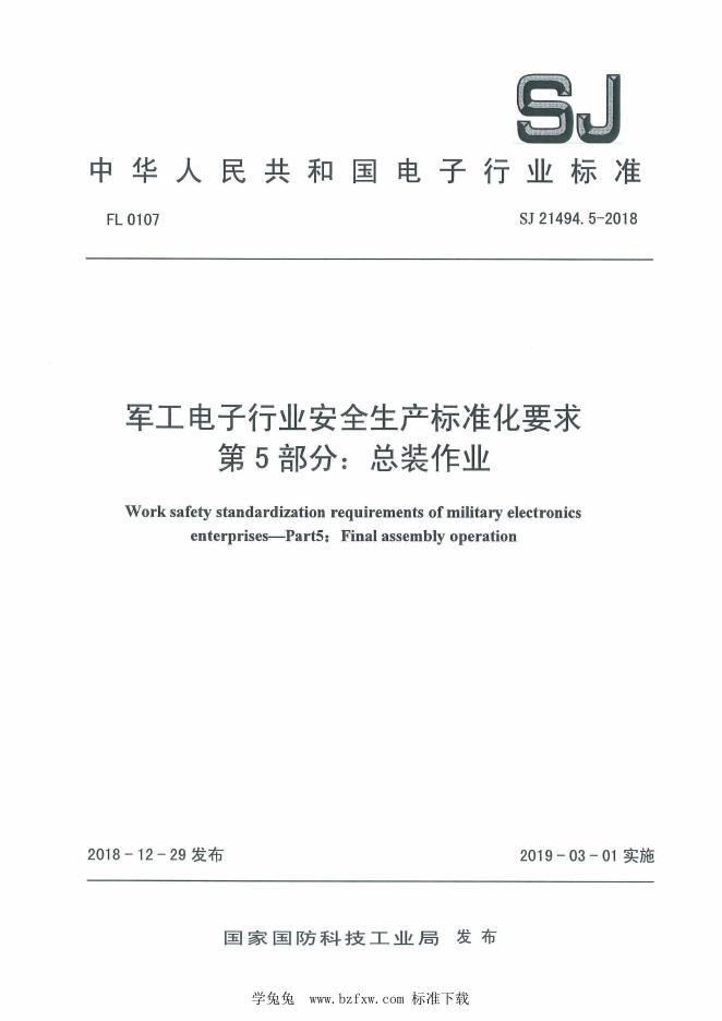 SJ 21494.5-2018 军工电子行业安全生产标准化要求 第5部分:总装作业