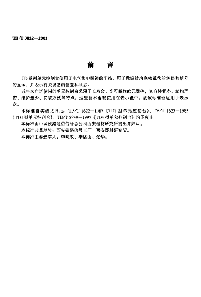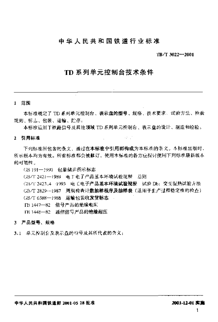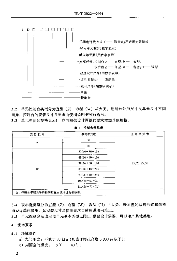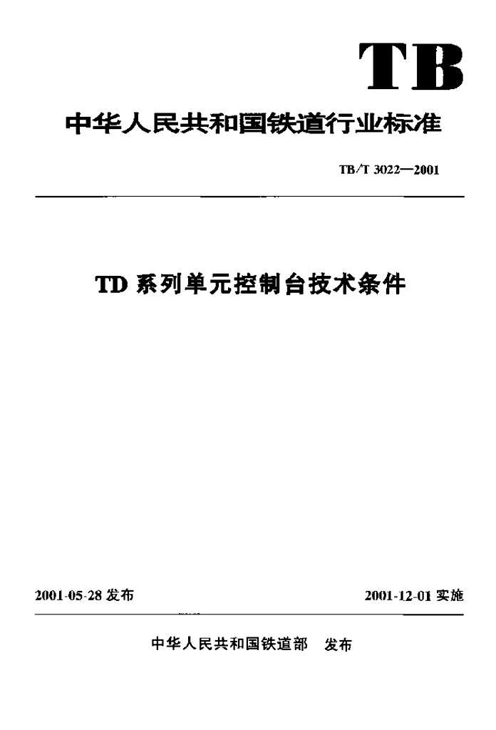 TB/T 3022-2001 TD系列单元控制台技术条件