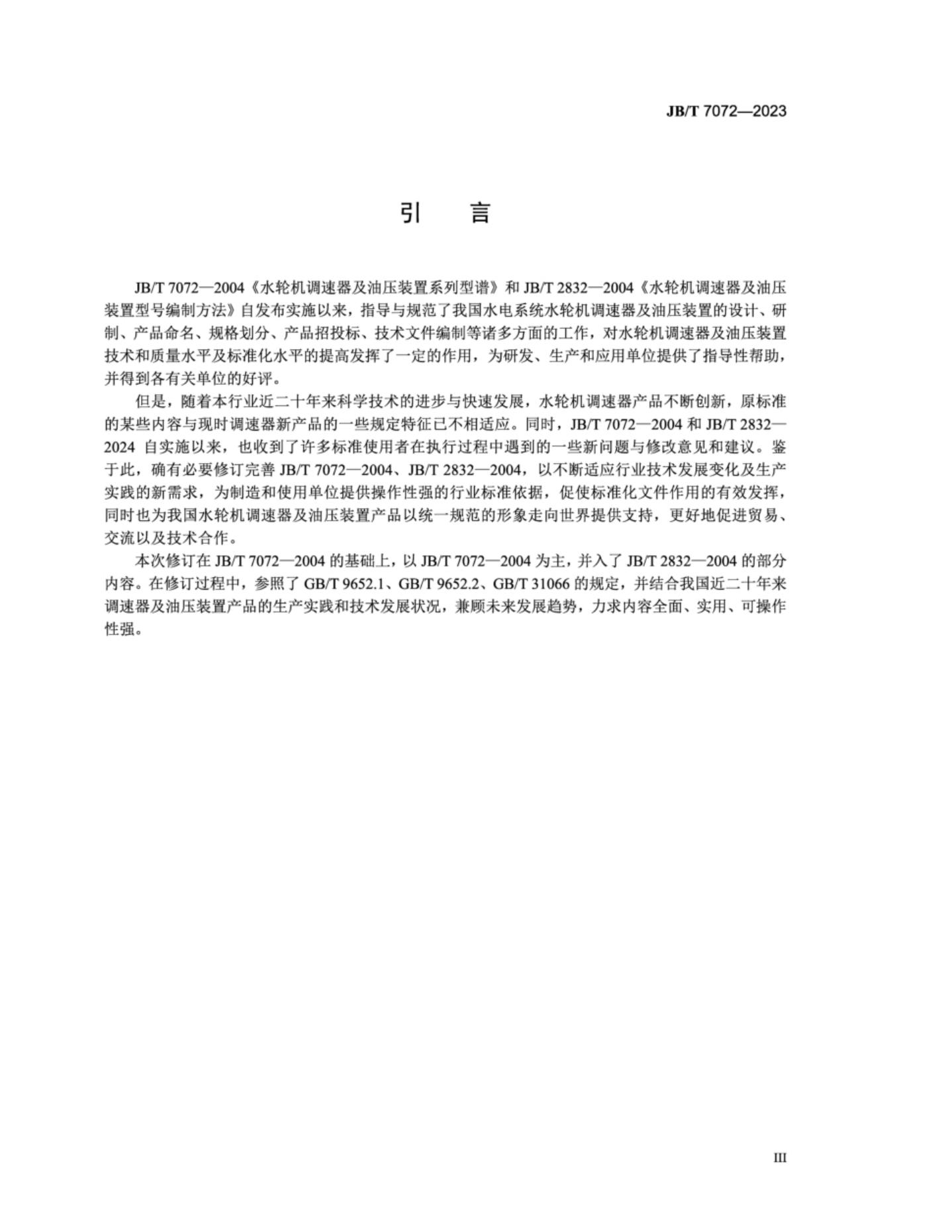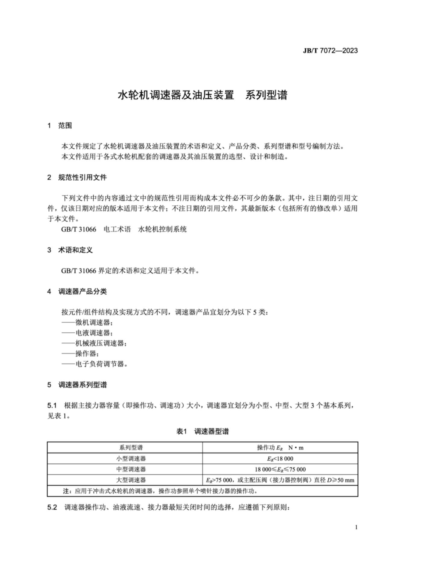 JB/T 7072-2023 水轮机调速器及油压装置 系列型谱