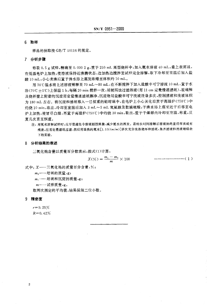 SN/T 0951-2000 进出口仲钨酸铵中三氧化钨含量的测定