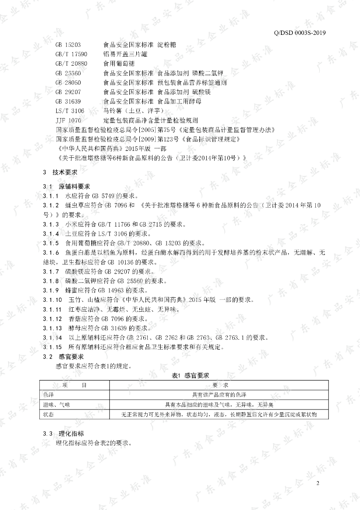 Q/DSD 0003S-2019 蛹虫草饮品