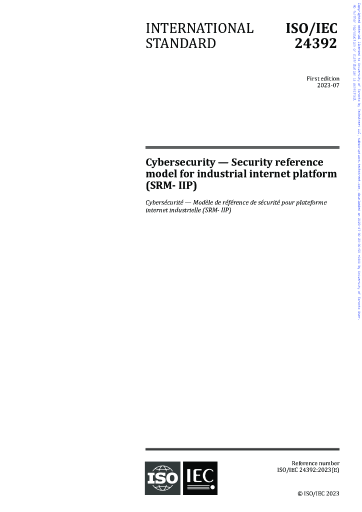 ISO/IEC 24392-2023 Cybersecurity—Security reference model for industrial internet platform (SRM-IIP)
