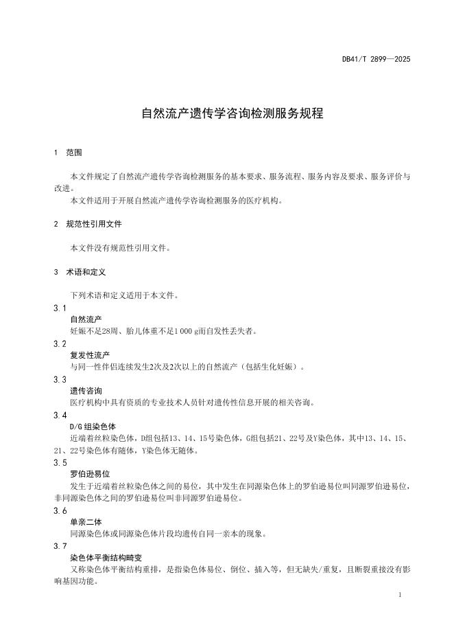 DB41/T 2899-2025 自然流产遗传学咨询检测服务规程