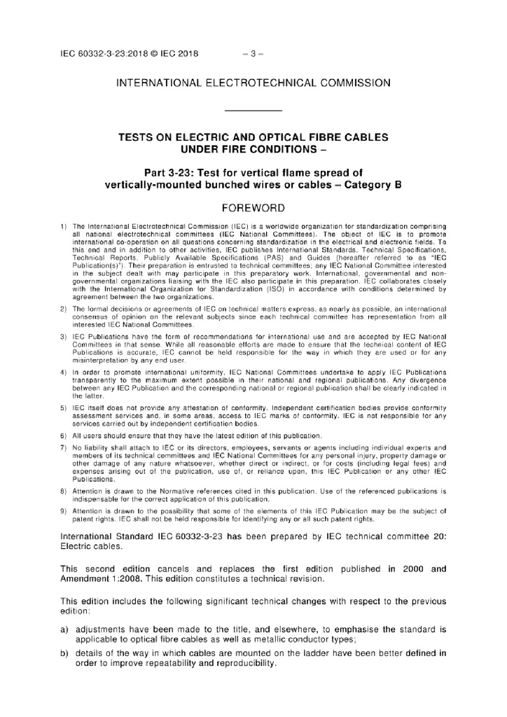 IEC 60332-3-23:2018 电缆和光缆在火焰条件下的燃烧试验 第3-23部分 垂直安装的成束电线或电缆的垂直火焰蔓延试验 B类
