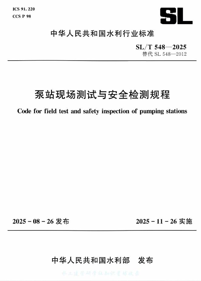 SL/T 548-2025 泵站现场测试与安全检测规程