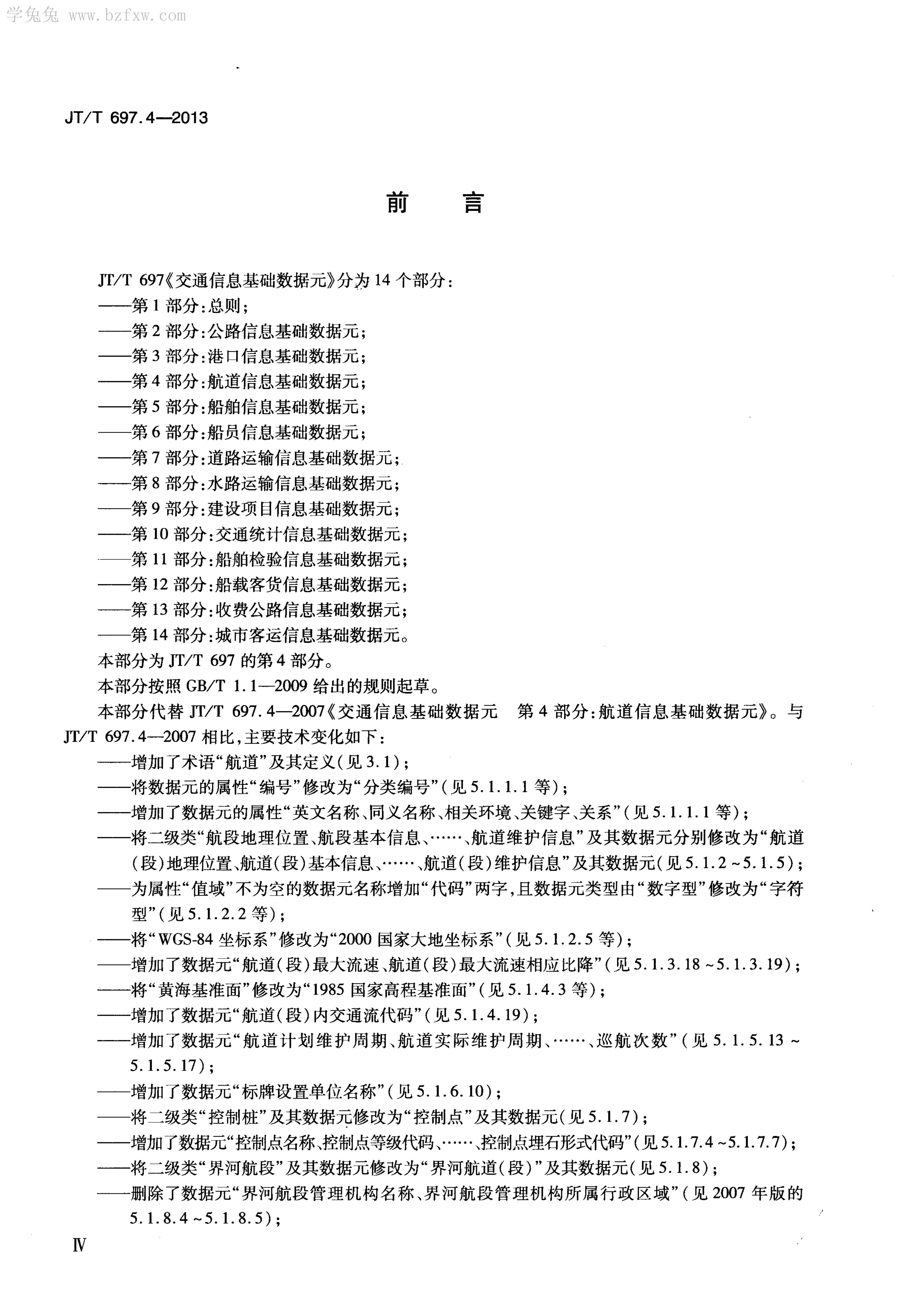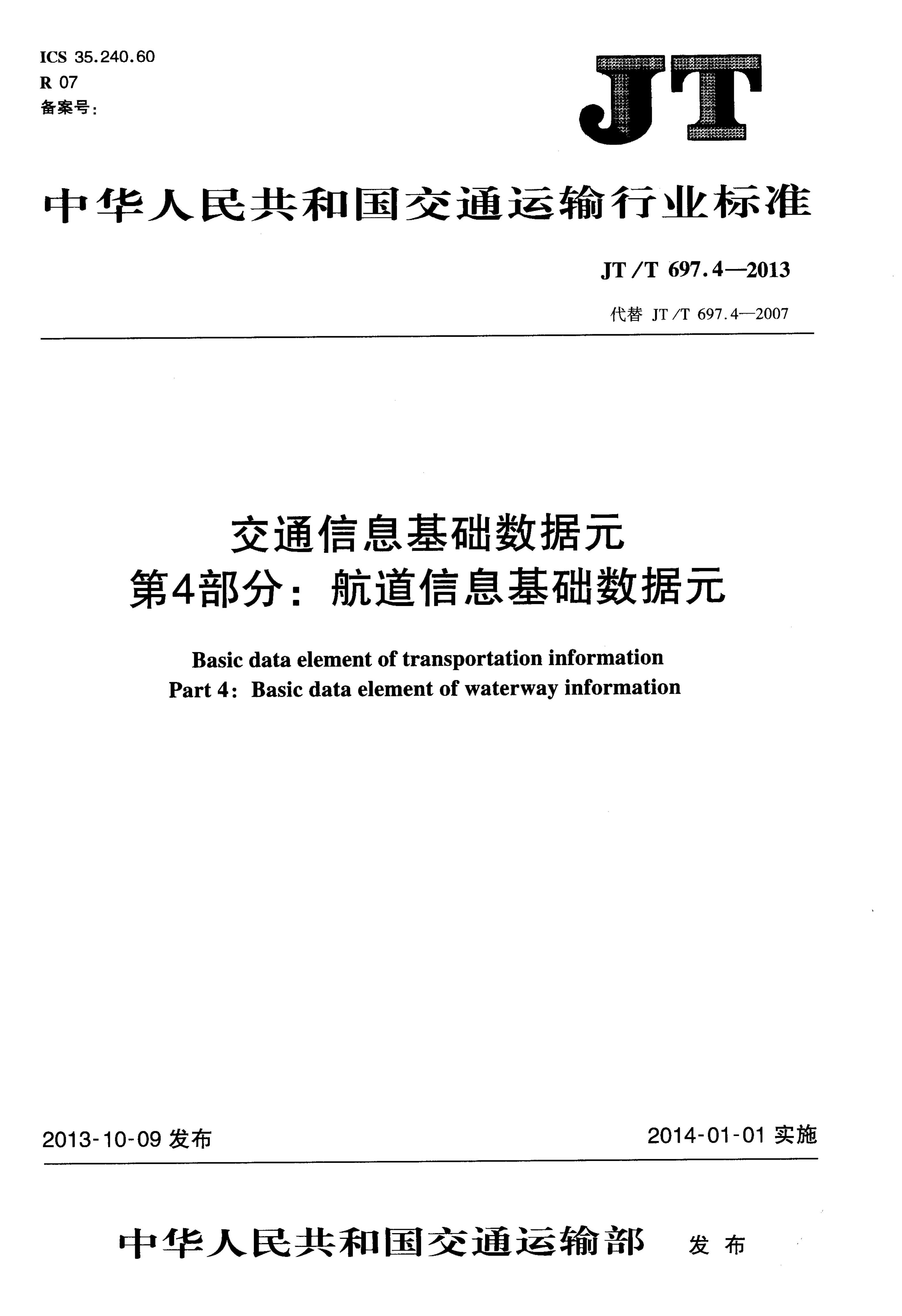 JT/T 697.4-2013 交通信息基础数据元 第4部分:航道信息基础数据元