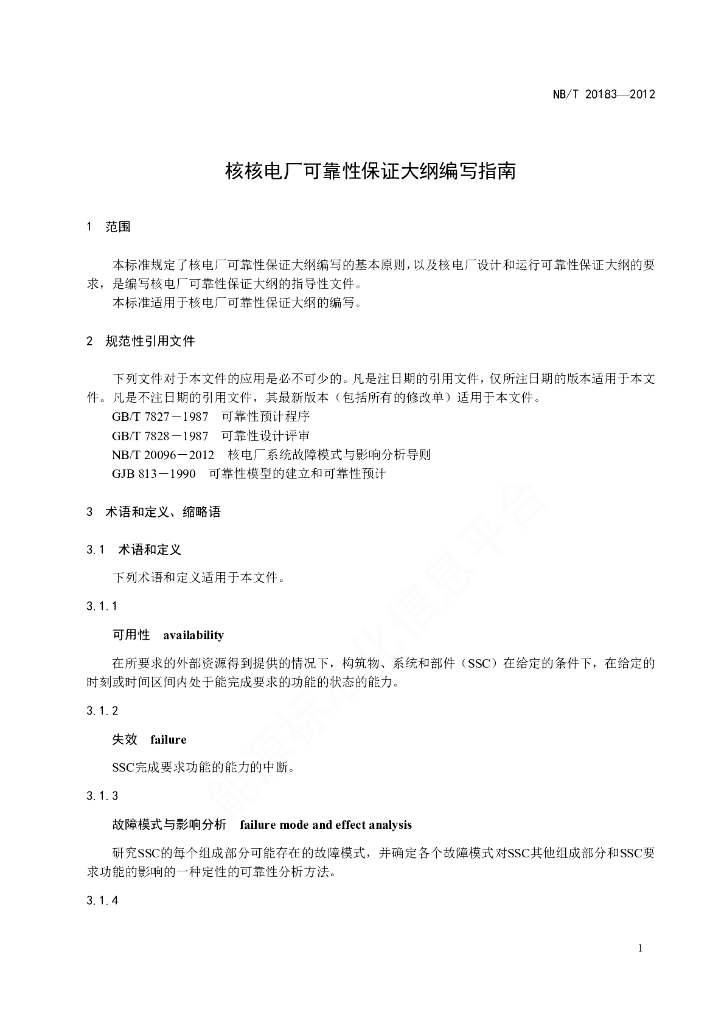 NB/T 20183-2012 核电厂可靠性保证大纲编写指南