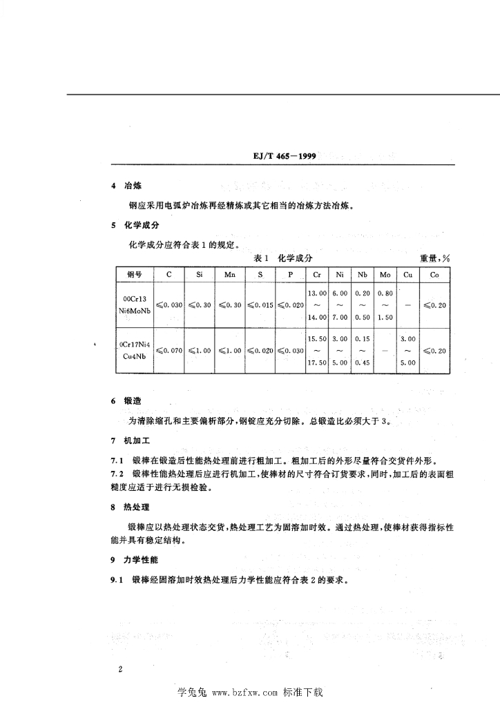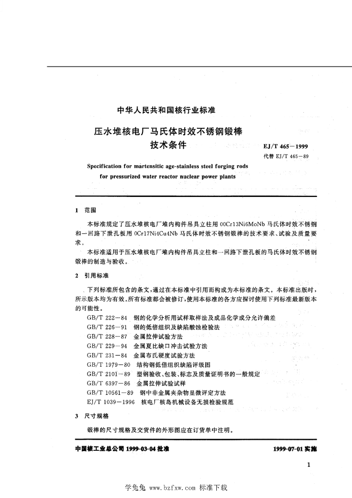 EJ/T 465-1999 压水堆核电厂马氏体时效不锈钢锻棒技术条件
