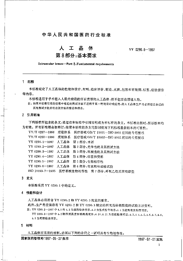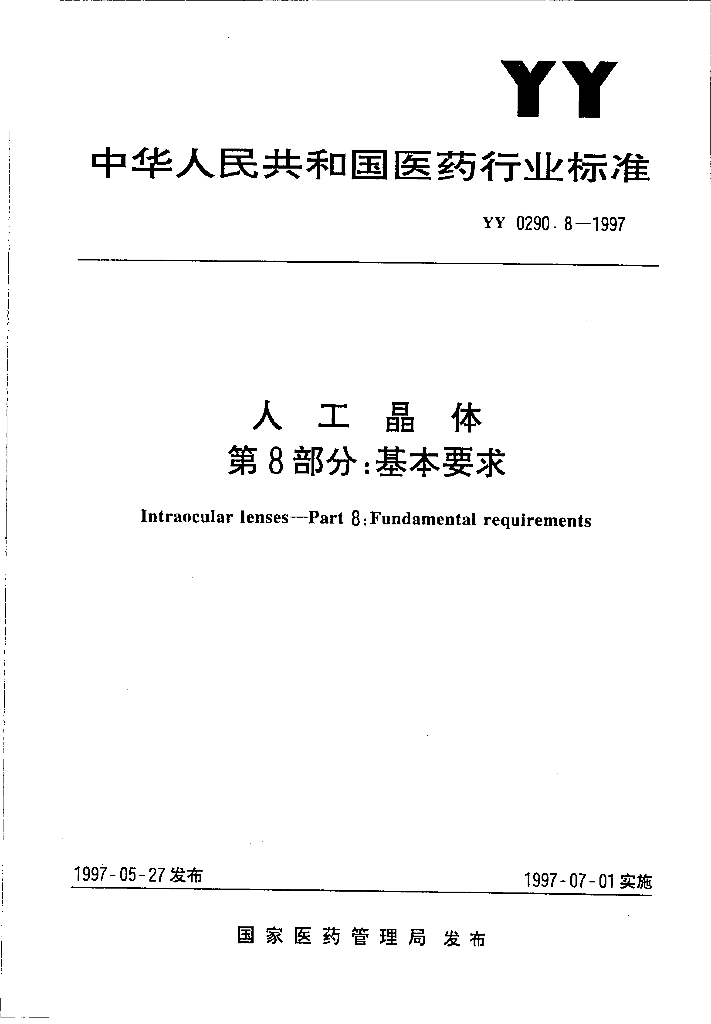YY 0290.8-1997 人工晶体 第8部分-基本要求
