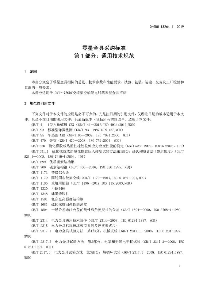 Q/GDW 13264.1-2019 零星金具采购标准 第1部分:通用技术规范