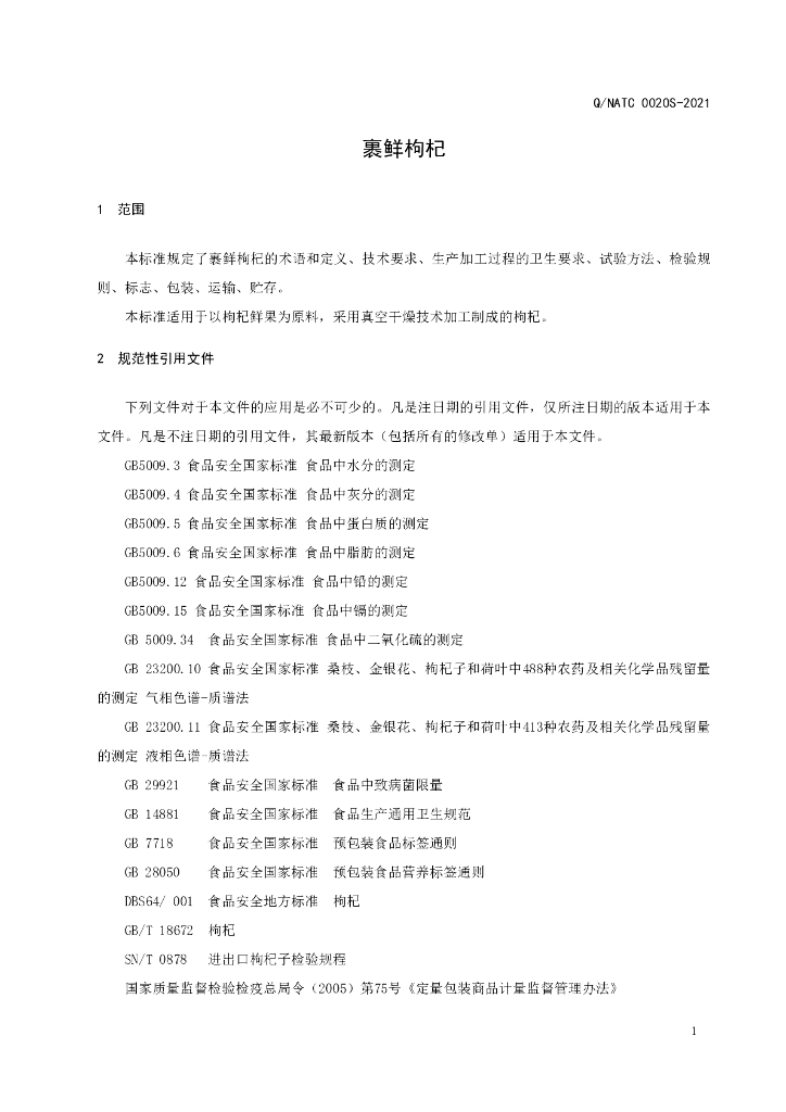 Q/NATC 0020S-2021 裹鲜枸杞