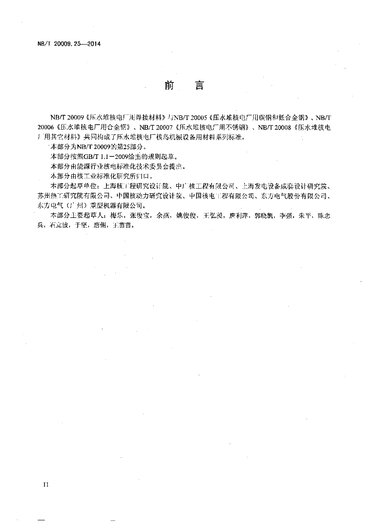 NB/T 20009.25-2014 压水堆核电厂用焊接材料 第25部分:安全级设备用碳钢气体保护电弧焊药芯焊丝