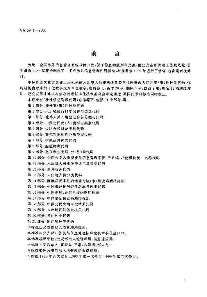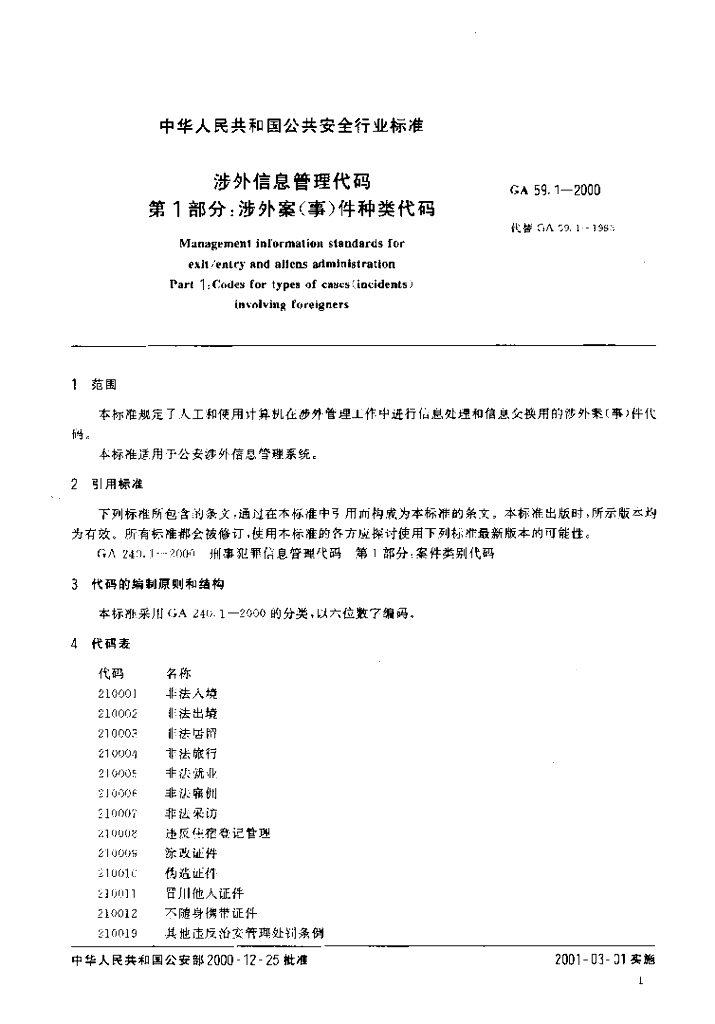 GA 59.1-2000 涉外信息管理代码 第1部分:涉外案(事)件种类代码