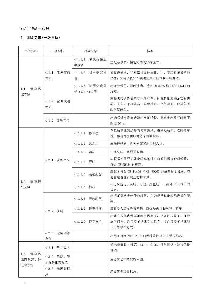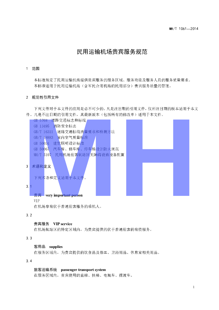 MH/T 1061-2014 民用运输机场贵宾服务规范