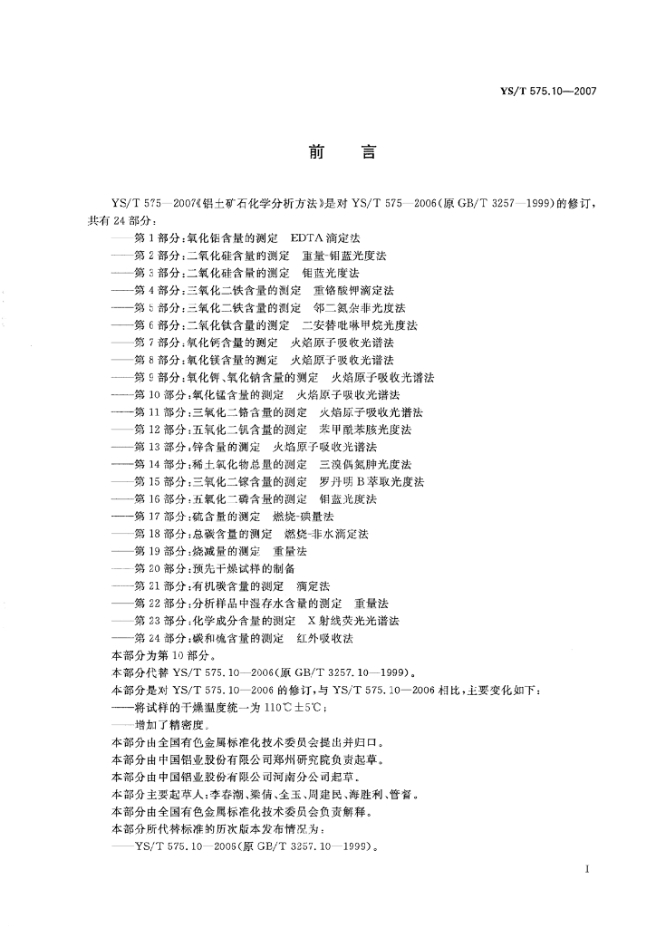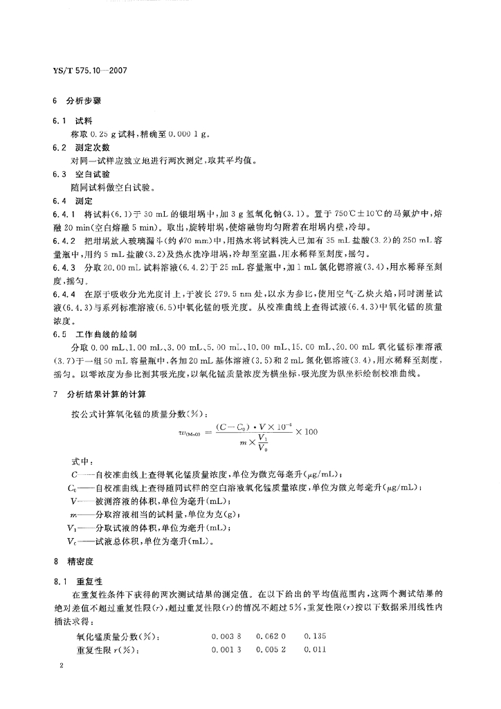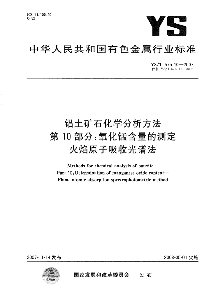 YS/T 575.10-2007 铝土矿石化学分析方法 第10部分:氧化锰含量的测定 火焰原子吸收光谱法