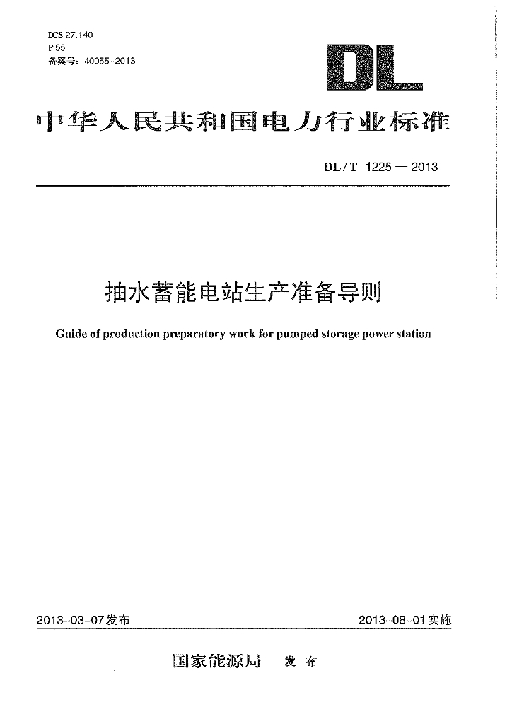 DL/T 1225-2013 抽水蓄能电站生产准备导则
