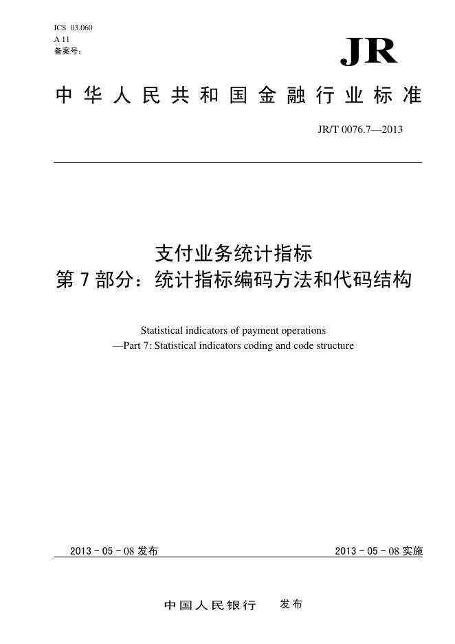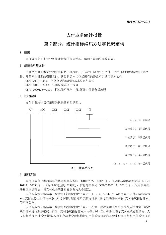 JR/T 0076.7-2013 支付业务统计指标 第7部分:统计指标编码方法和代码结构
