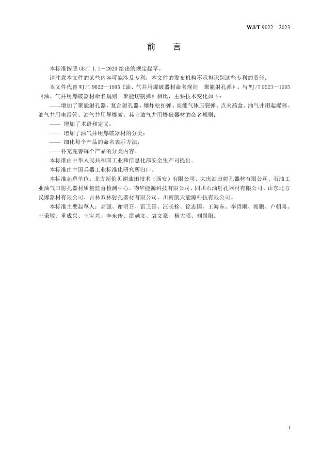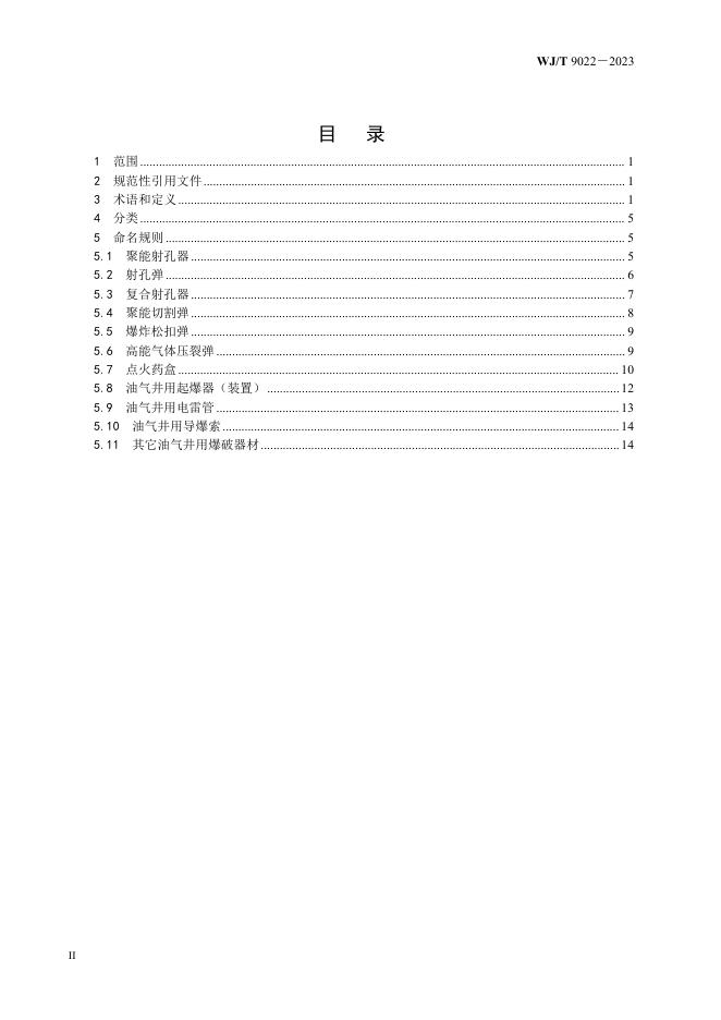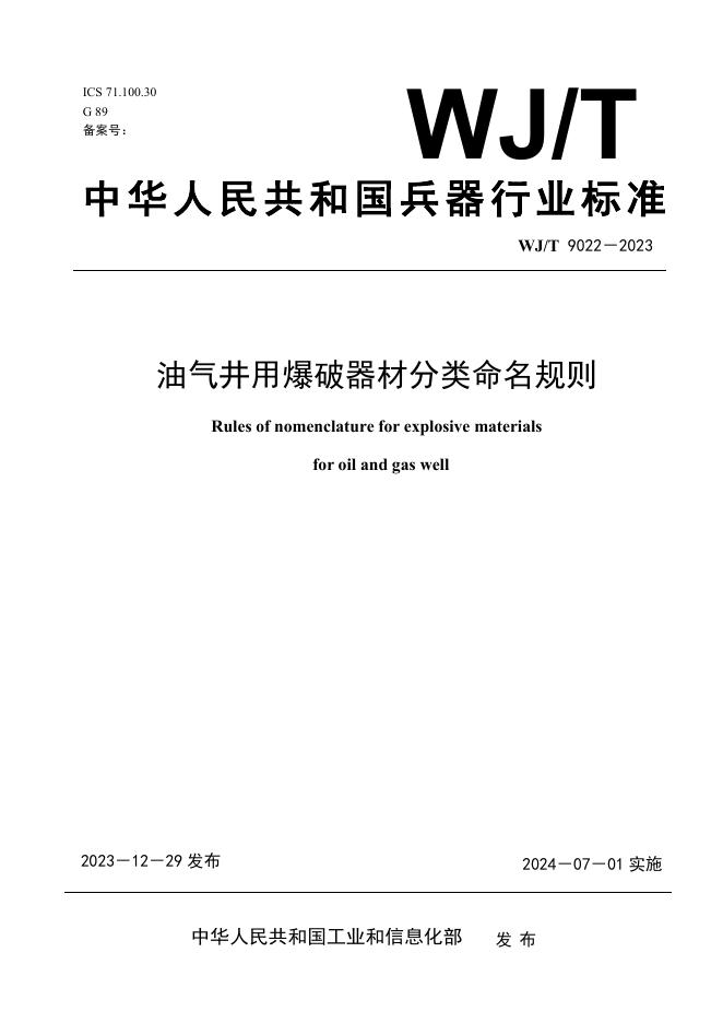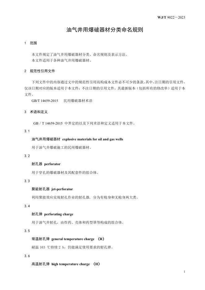 WJ/T 9022-2023 油气井用爆破器材分类命名规则