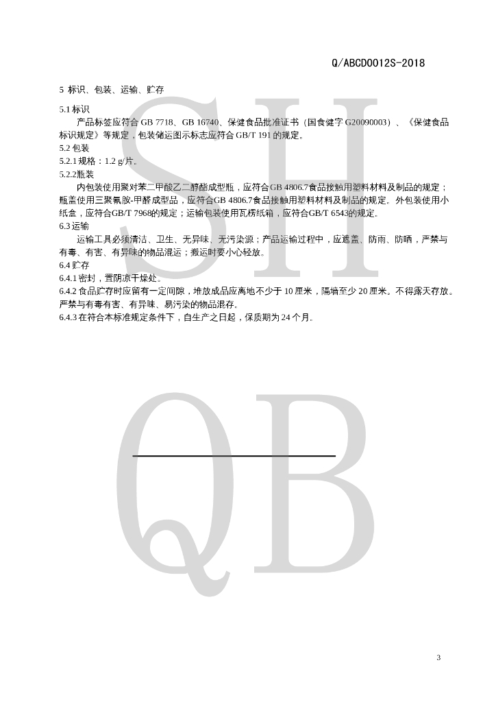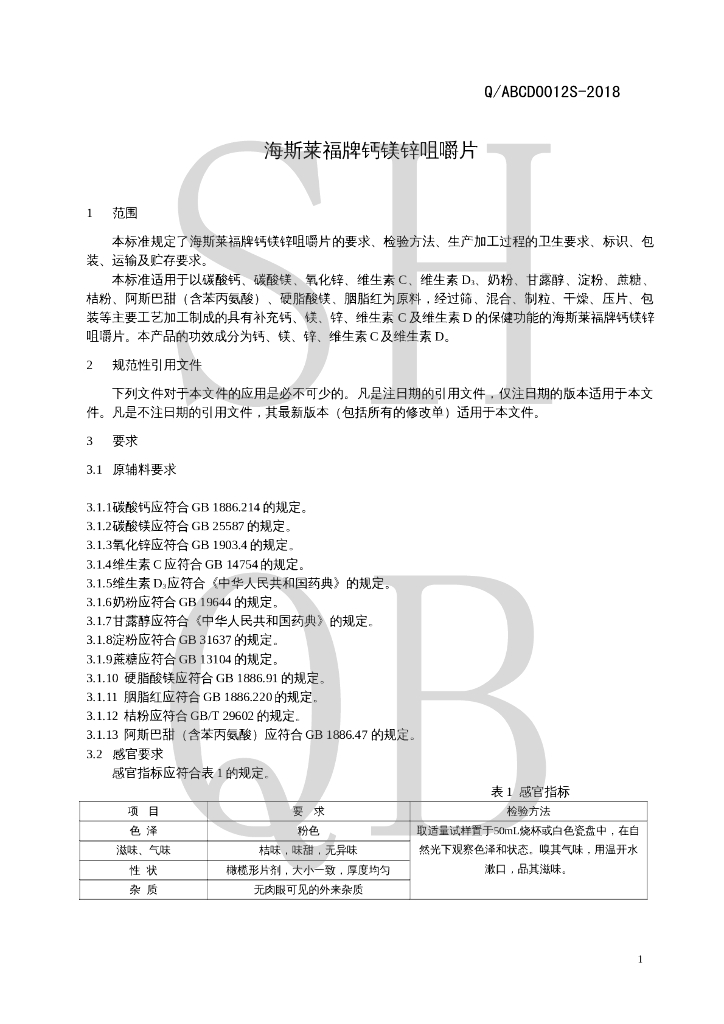 Q/ABCD 0012S-2018 海斯莱福牌钙镁锌咀嚼片