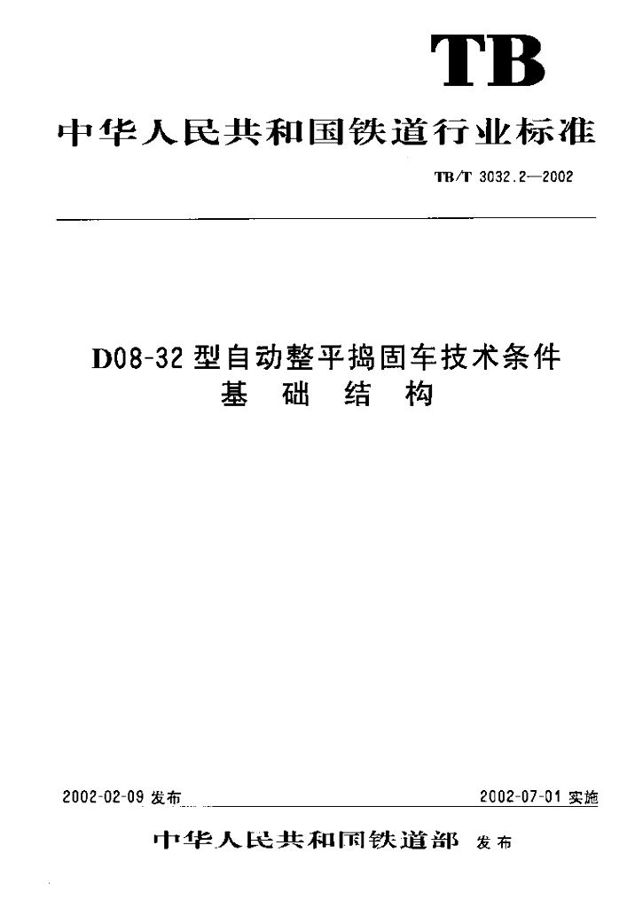 TB/T 3032.2-2002 D08-32型自动整平捣固车技术条件 基础结构