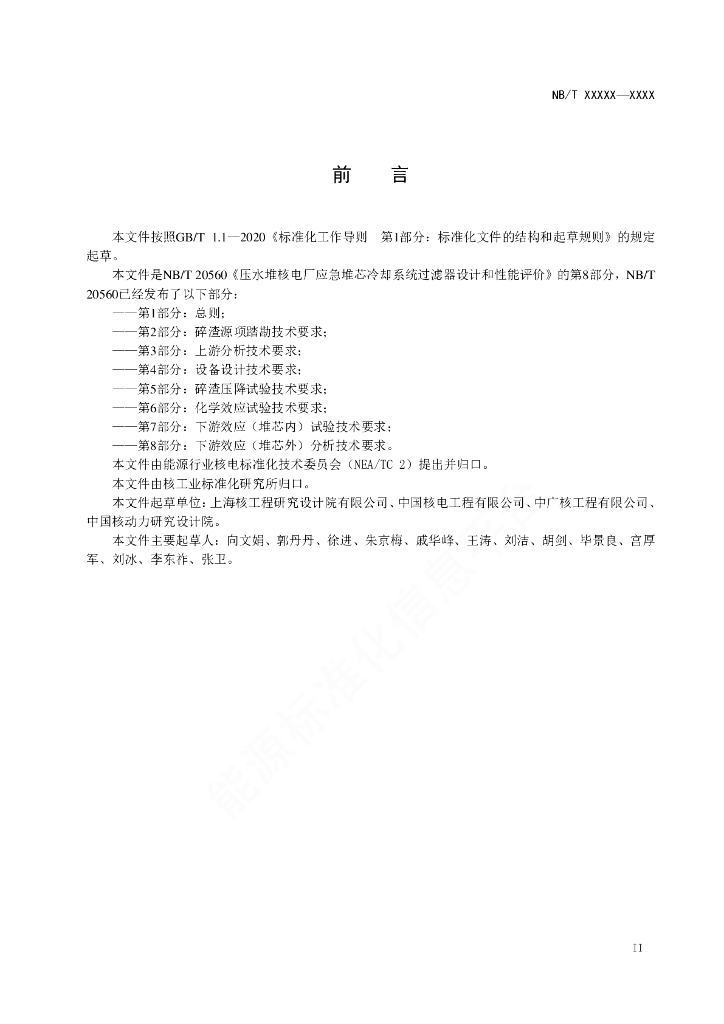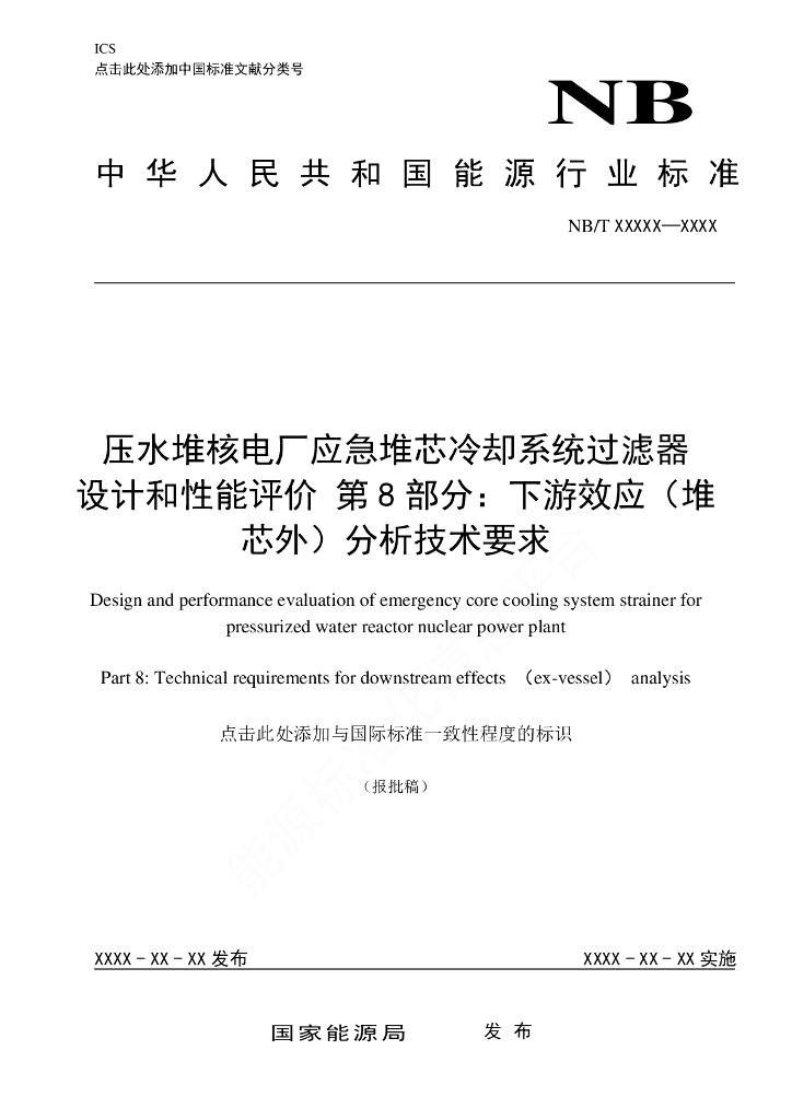 NB/T 20560.8-2023 压水堆核电厂应急堆芯冷却系统过滤器设计和性能评价 第8部分:下游效应(堆芯外)分析技术要求
