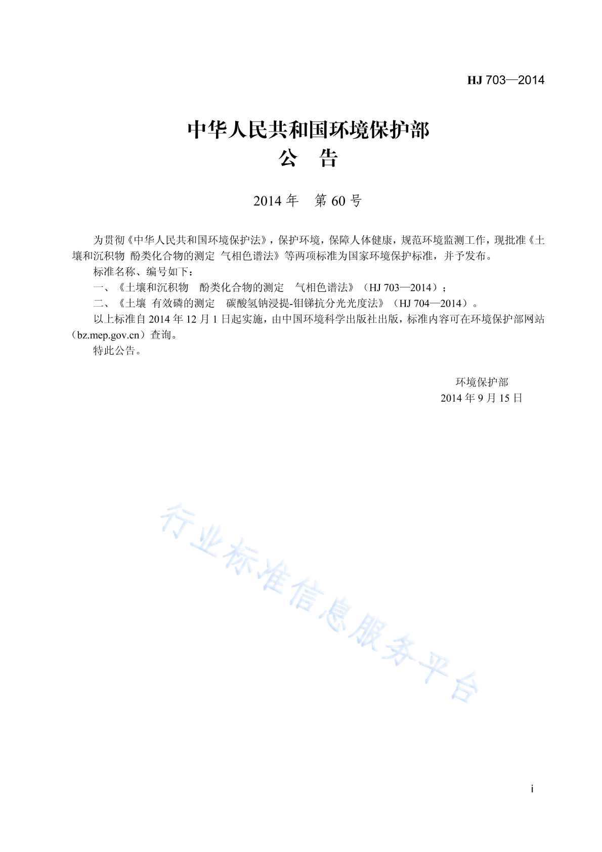 HJ 703-2014 土壤和沉积物 酚类化合物的测定 气相色谱法