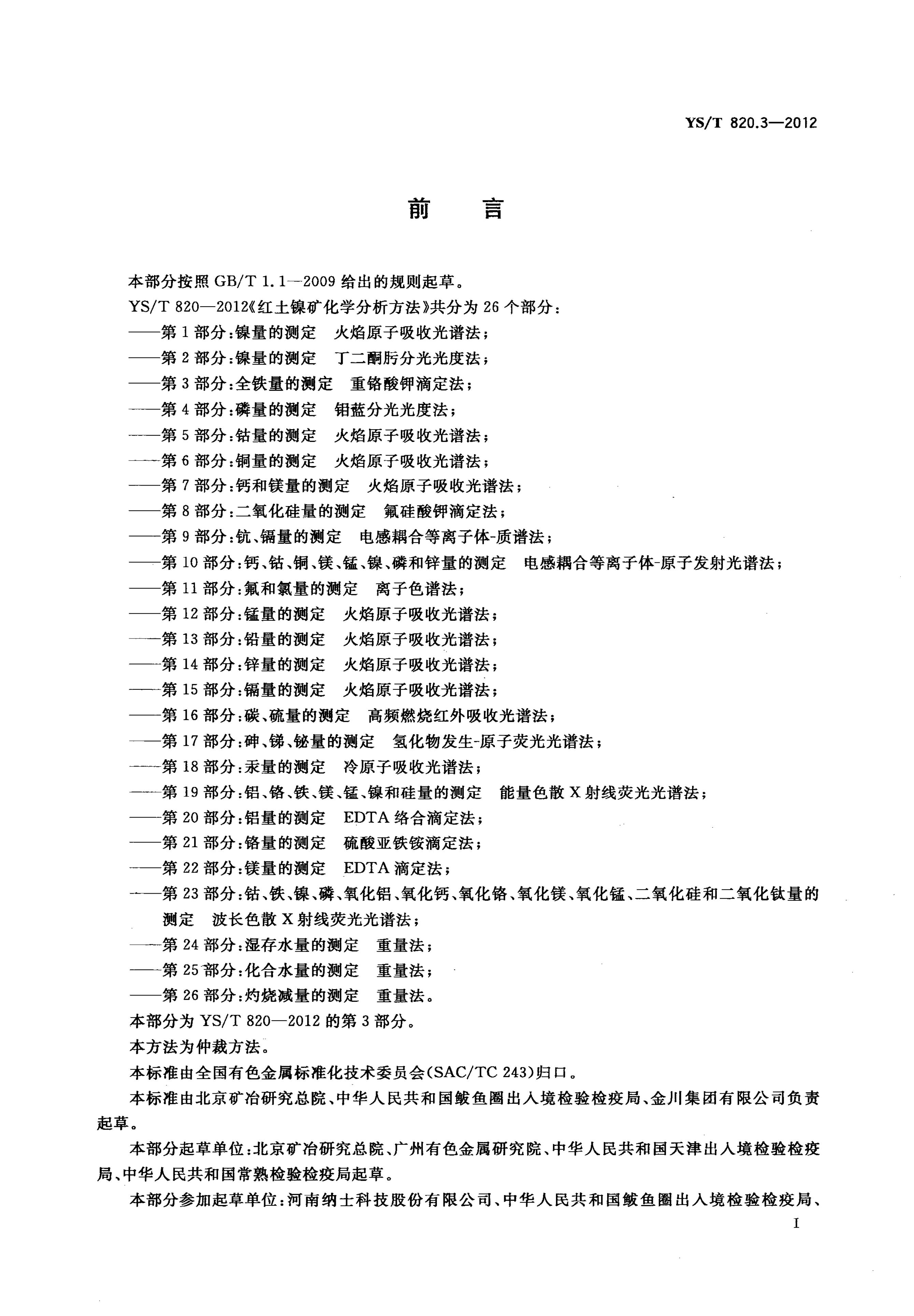 YS/T 820.3-2013 红土镍矿化学分析方法 第3部分:全铁量的测定 重铬酸钾滴定法