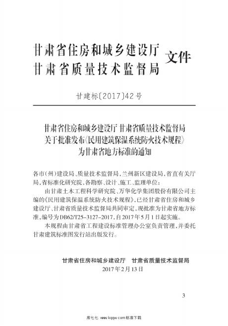 DB62/T 25-3127-2017 民用建筑保温系统防火技术规程
