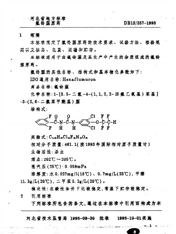DB13/ 357-1998 氟铃脲原药