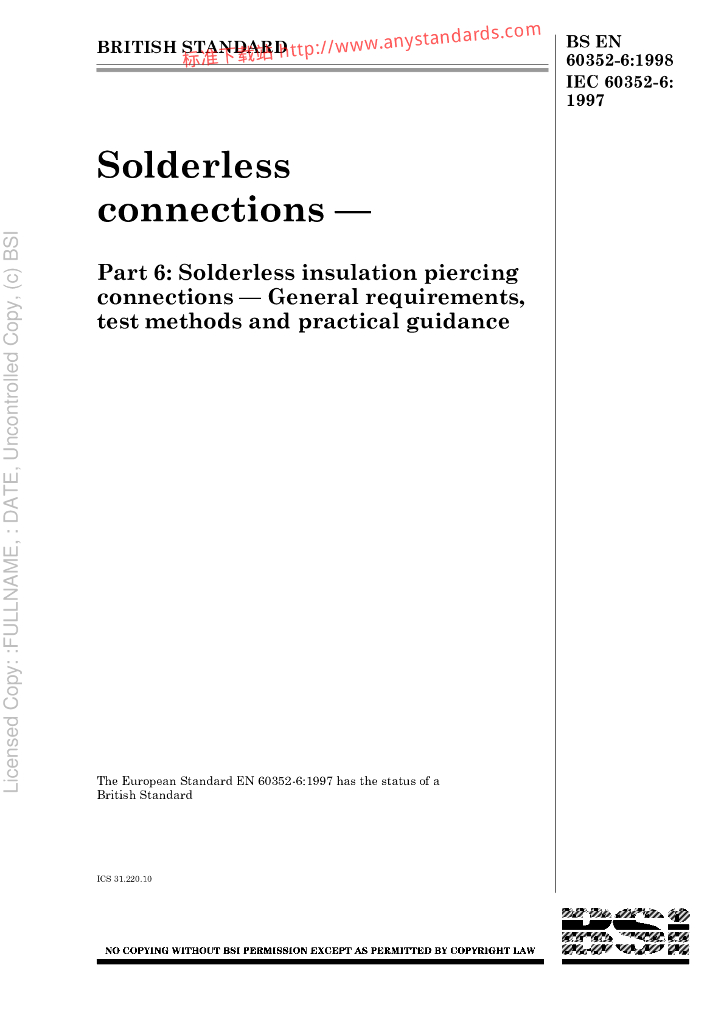 BS EN 60352-6-1998 无焊连接.无焊绝缘穿孔连接.一般要求、试验方法和实用指南
