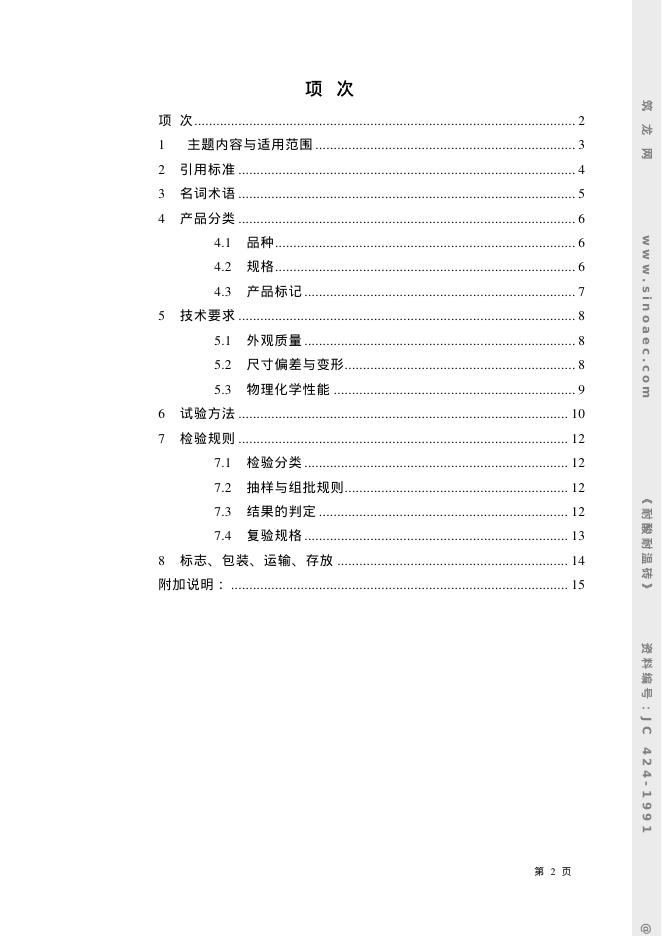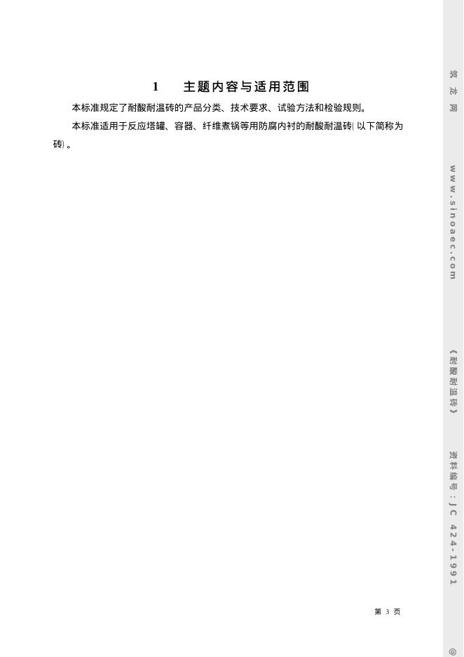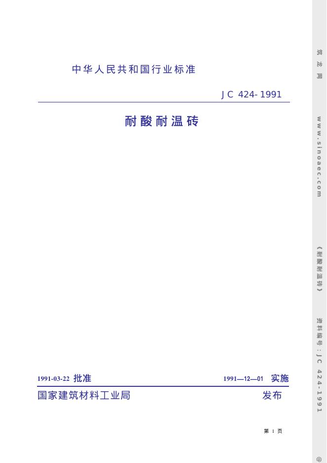 JC 424-1991 耐酸耐温砖
