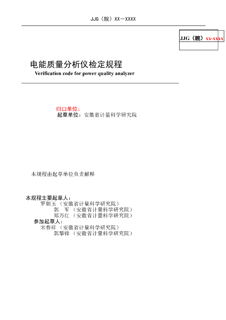 JJG(皖)40-2015 电能质量分析仪地方规程