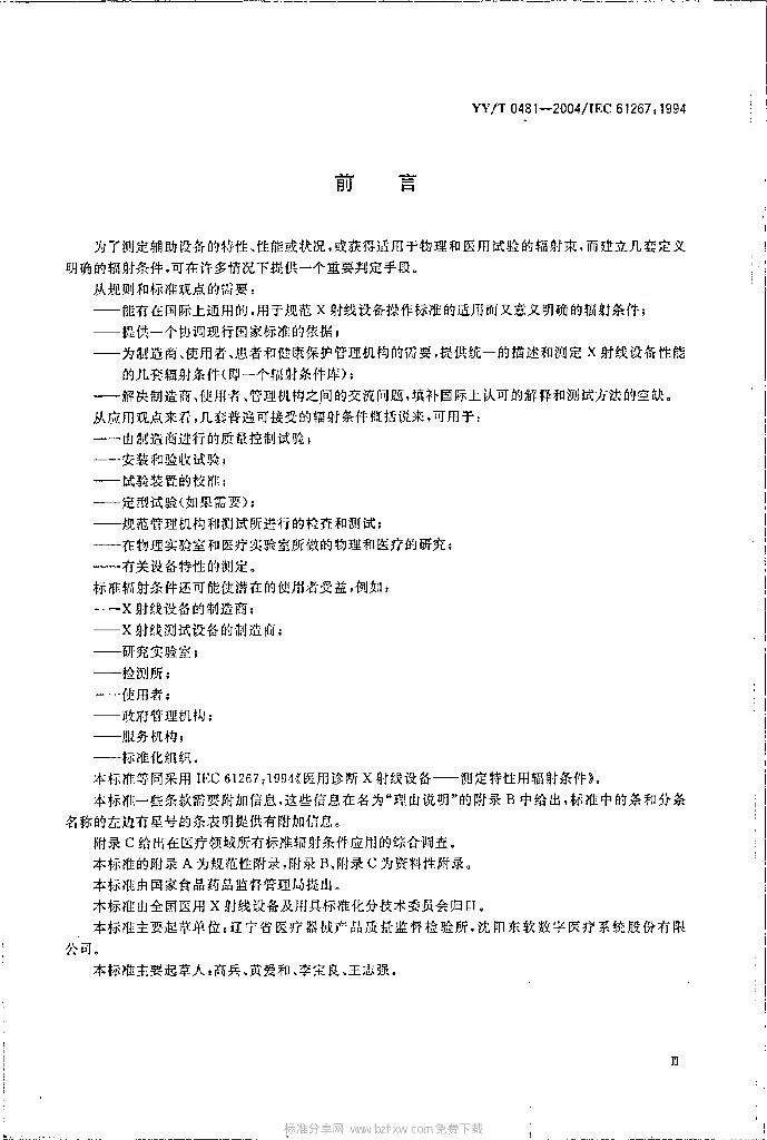 YY/T 0481-2004/IEC 61267 : 1994 医用诊断X射线设备测定特性用辐射条件