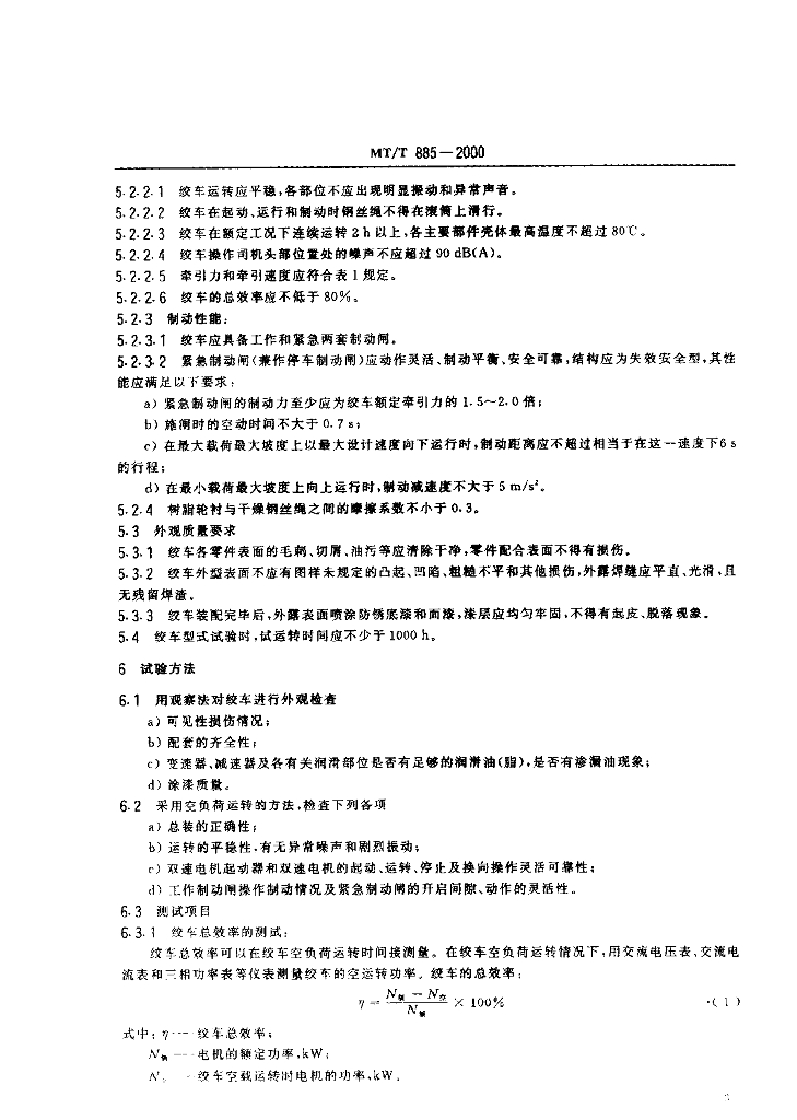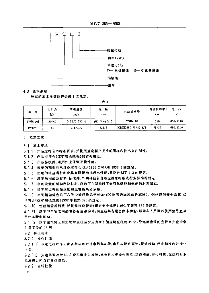 MT/T 885-2000 矿用无极绳调速机械绞车