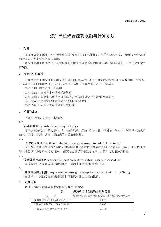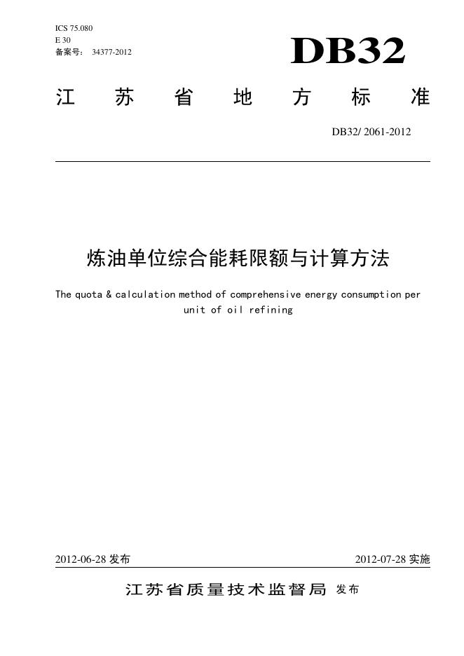 DB32/ 2061-2012 炼油单位综合能耗限额与计算方法