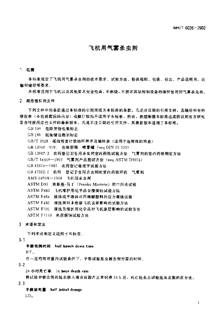 MH/T 6026-2002 飞机用气雾杀虫剂