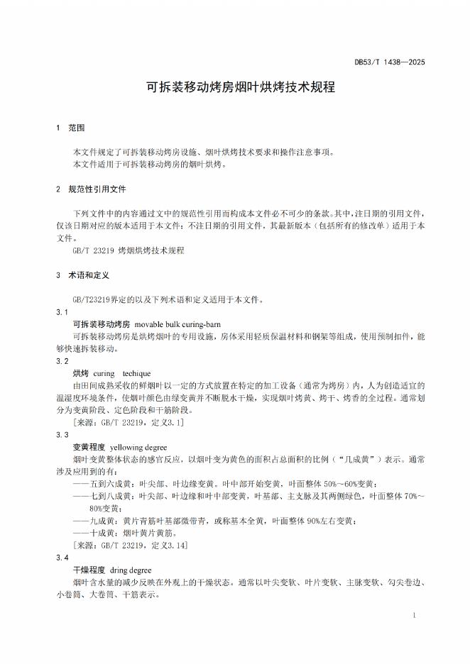 DB53/T 1438-2025 可拆装移动烤房烟叶烘烤技术规程