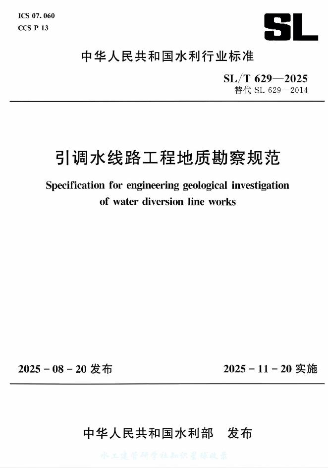 SL/T 629-2025 引调水线路工程地质勘察规范