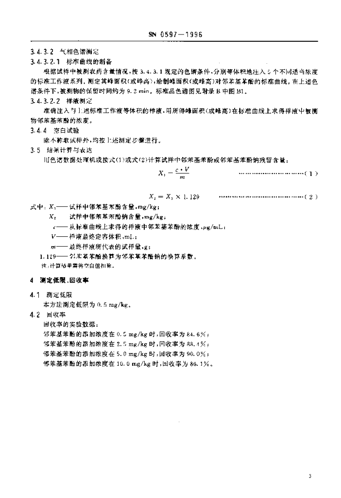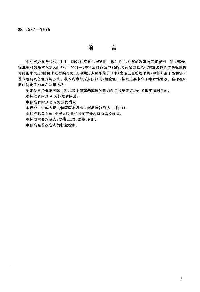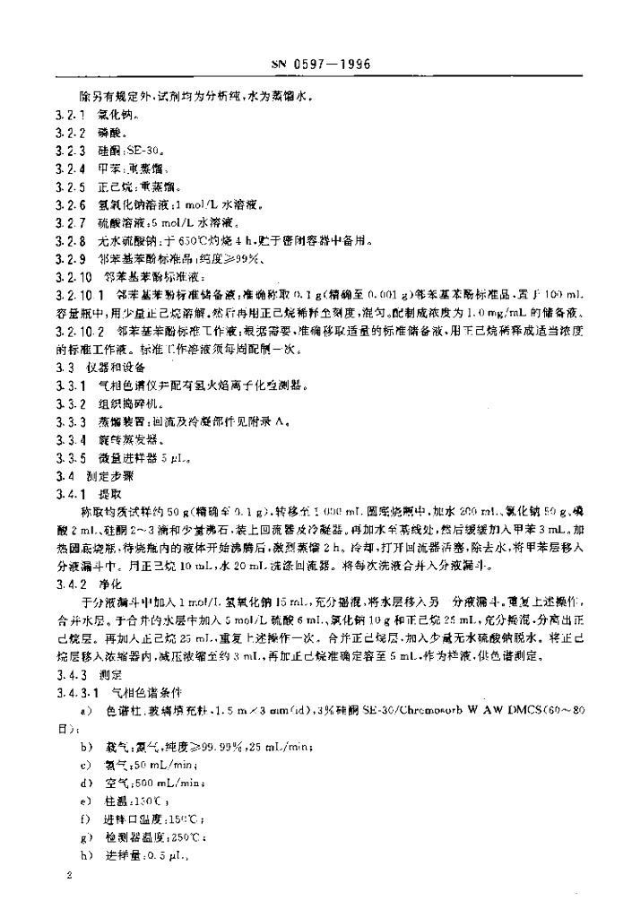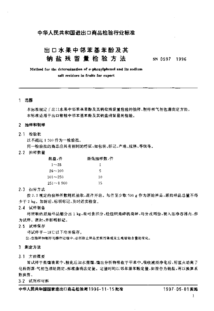 SN 0597-1996 出口水果中邻苯基苯酚及其钠盐残留量检验方法
