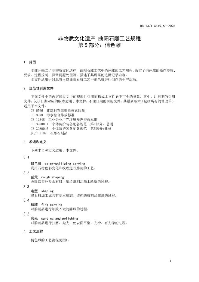 DB13/T 6149.5-2025 非物质文化遗产 曲阳石雕工艺规程 第5部分:俏色雕